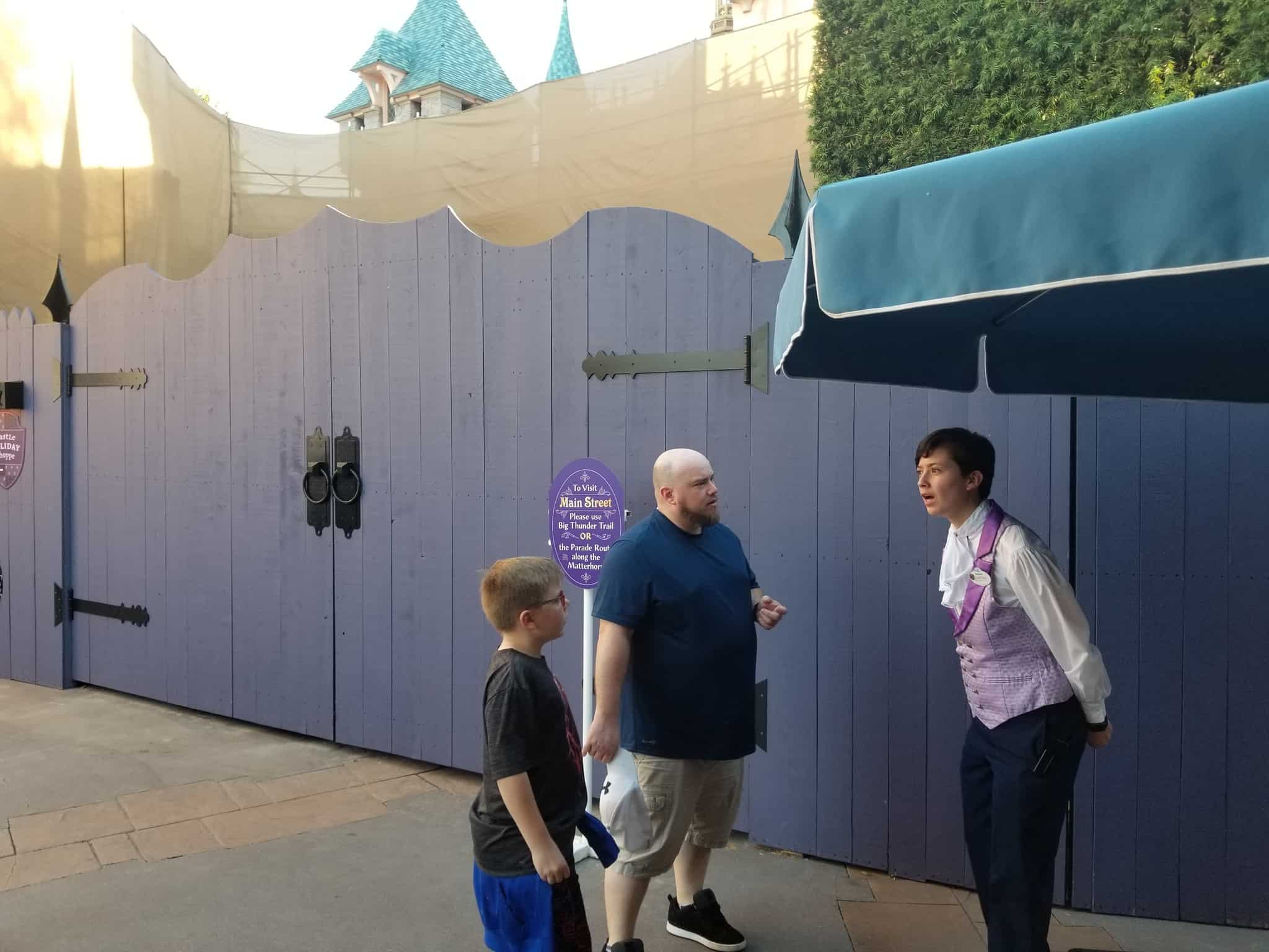 Guests are all “delighted” to learn they can’t cut through the castle at all, not even via the western walkway, which is currently unaffected by fencing. That particular path is for visitors of Bibbidi Bobbidi Boutique.