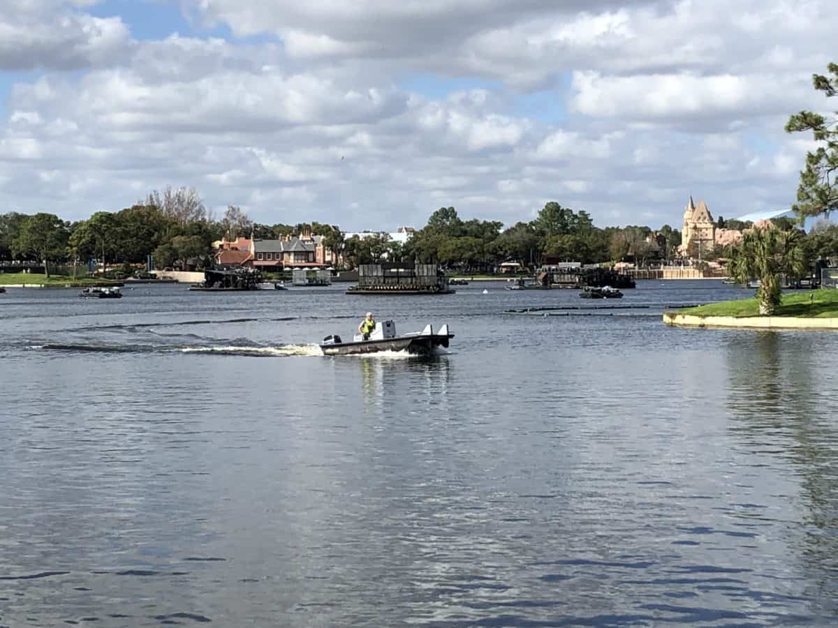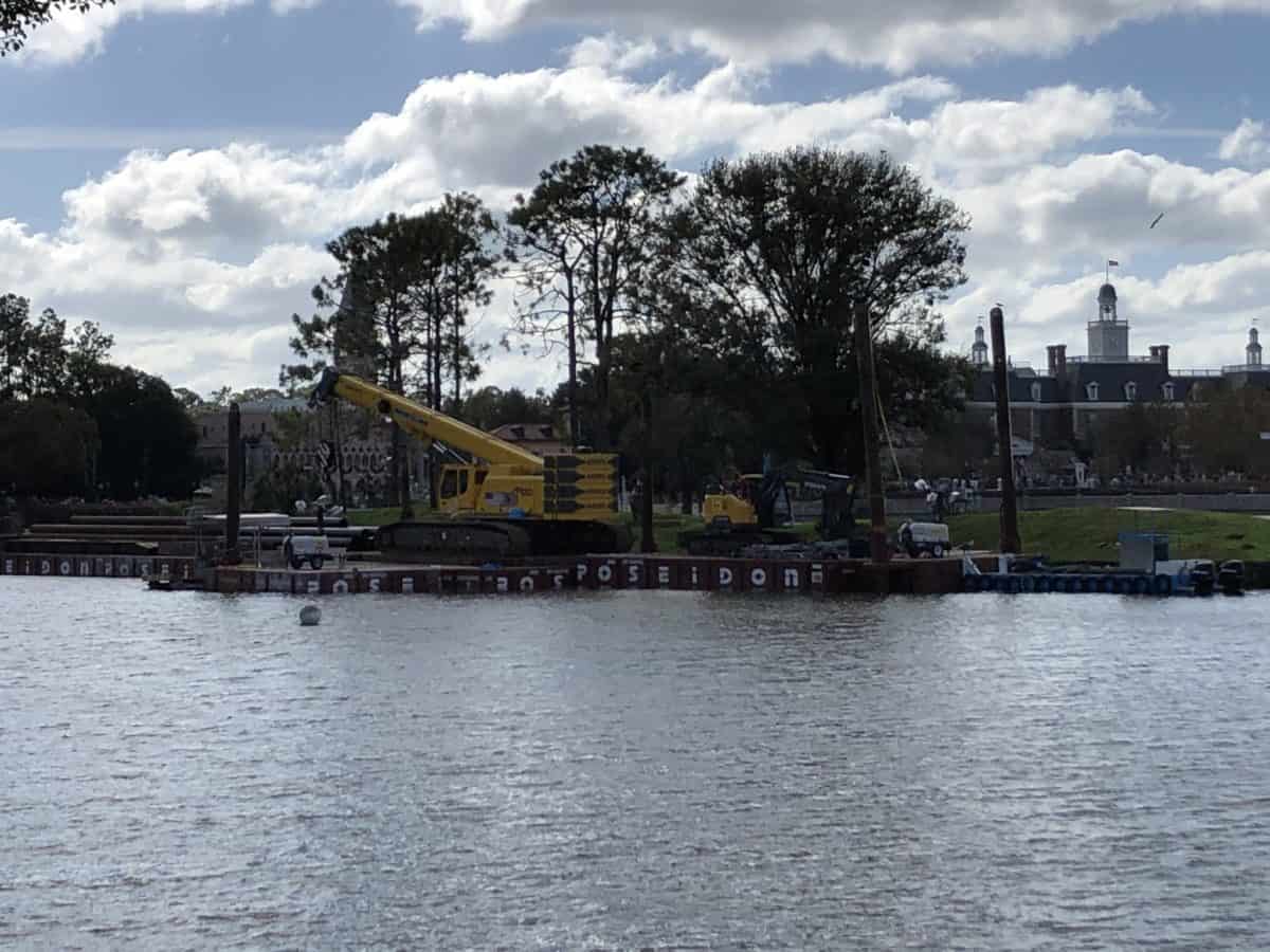 Work continues in the lagoon for the new fireworks show premiering in 2019.