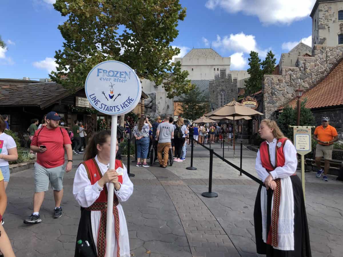 The queue for Frozen Ever After was long, but not as long as it could be. The cast members seemed to be expecting more people, and they had the line set up just in case.