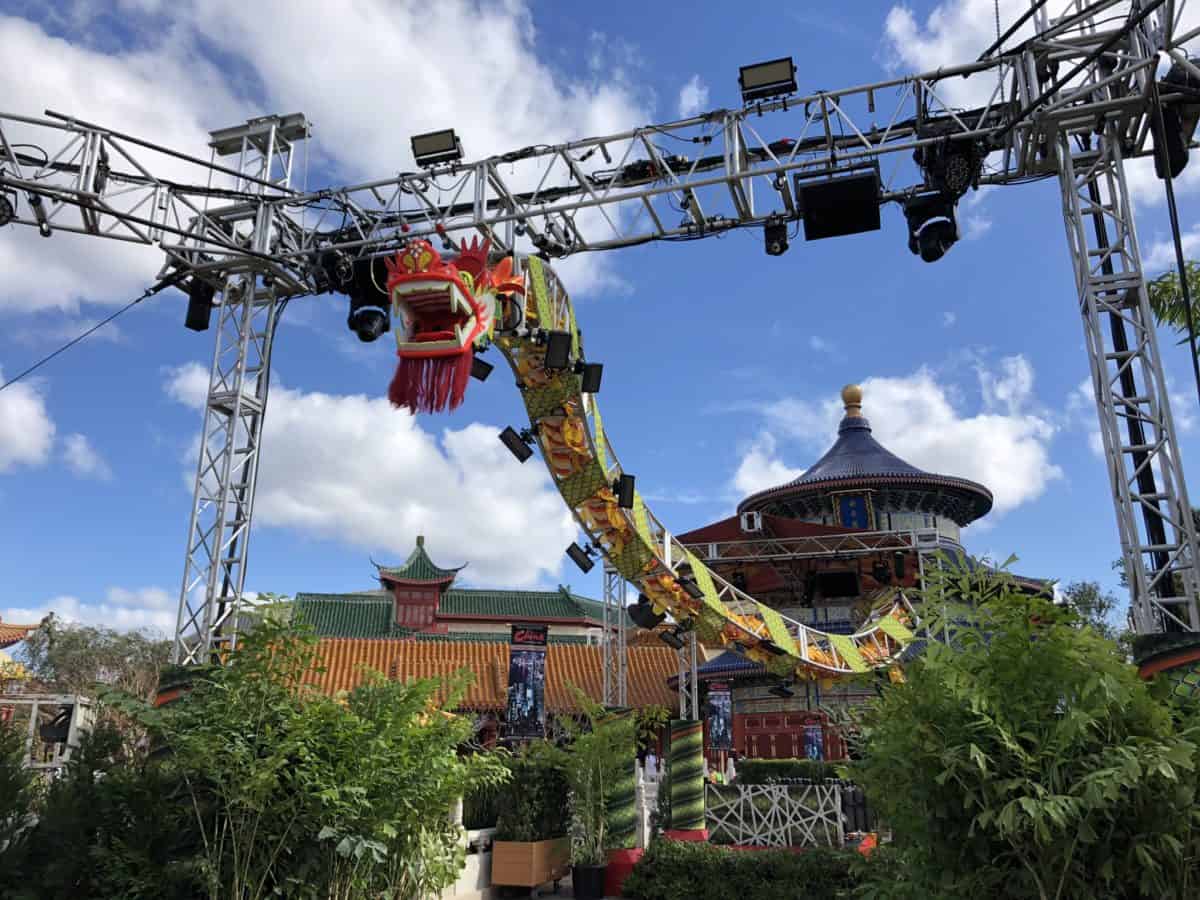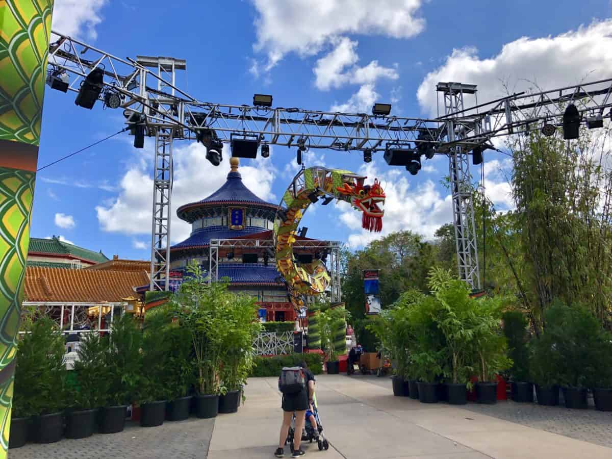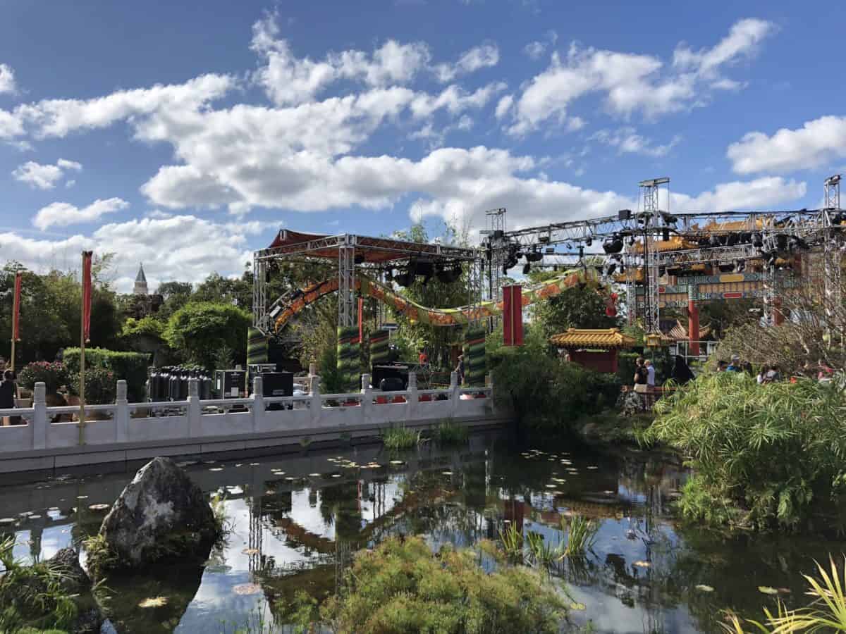 The China pavilion has one of a few big stages added to World Showcase just for New Year’s Eve. This one specifically is great because, well, there’s a dragon.