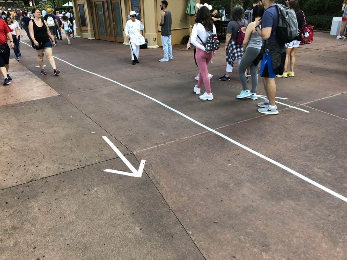 The entire length of World Showcase was taped off with lanes showing which way to walk. It was actually working amazingly well. It wouldn’t hurt to install these permanently.