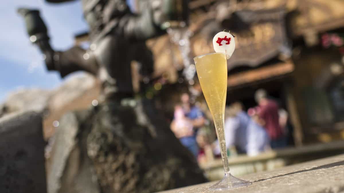 At Gaston’s Tavern in Fantasyland, you can find the Now and Forever Slush, a sparkling cider slush served in a Champagne flute and garnished with a white chocolate-dipped strawberry featuring Mickey and Minnie. This drink retails for $4.99. You should hurry to enjoy it, though: it will be available through the end of February.