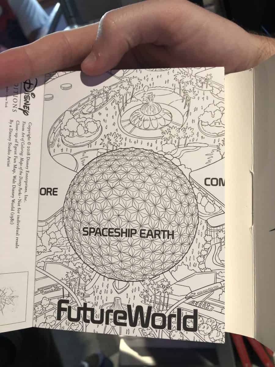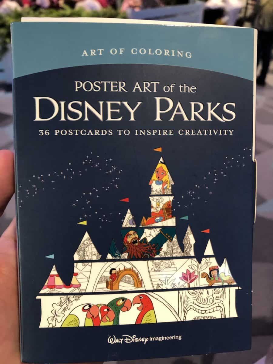While exploring the 2019 Epcot Festival Of The Arts, we came across these really great new coloring books. The Poster Art of the Disney Parks and the Maps of the Disney Parks coloring books are now available inside the Festival of the Arts gift shop within the Odyssey Festival Showplace. The books are almost pocket size which makes them easy to take on a long trip or wherever. The pages within both books contain extremely detailed art with tight and close together lines, which work well as a stress relieving activity.