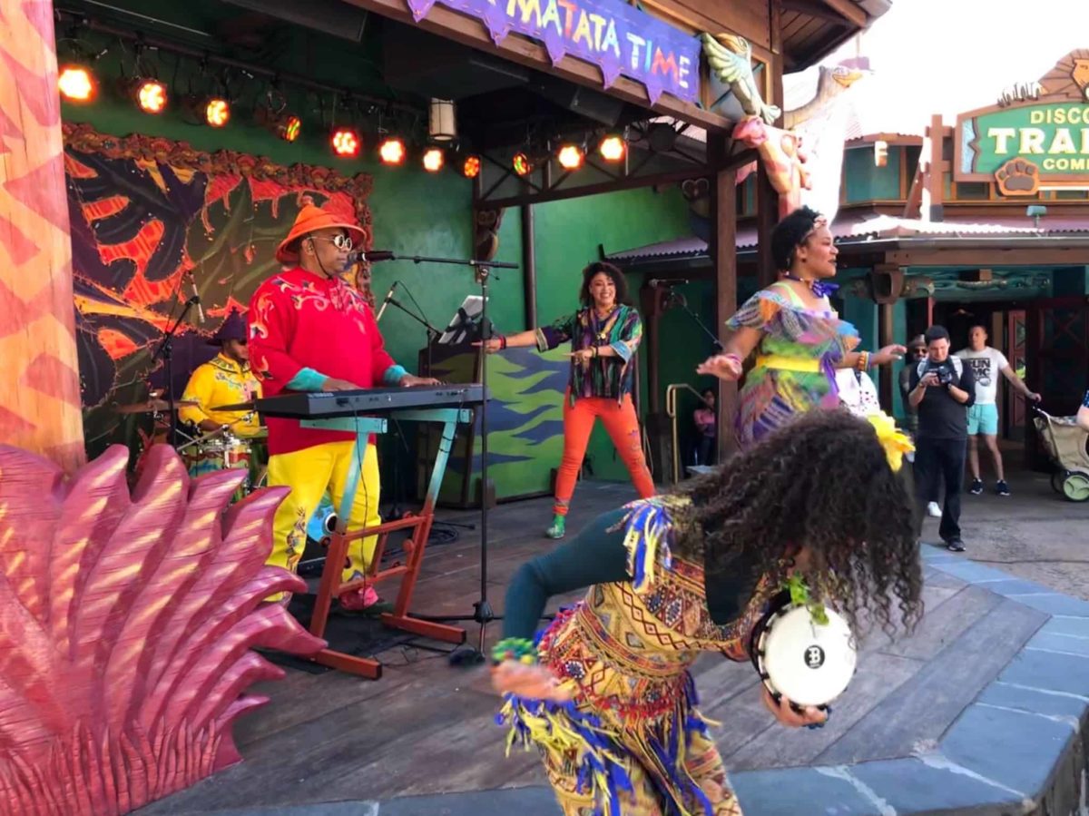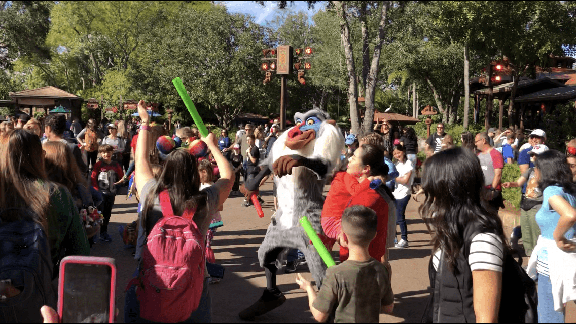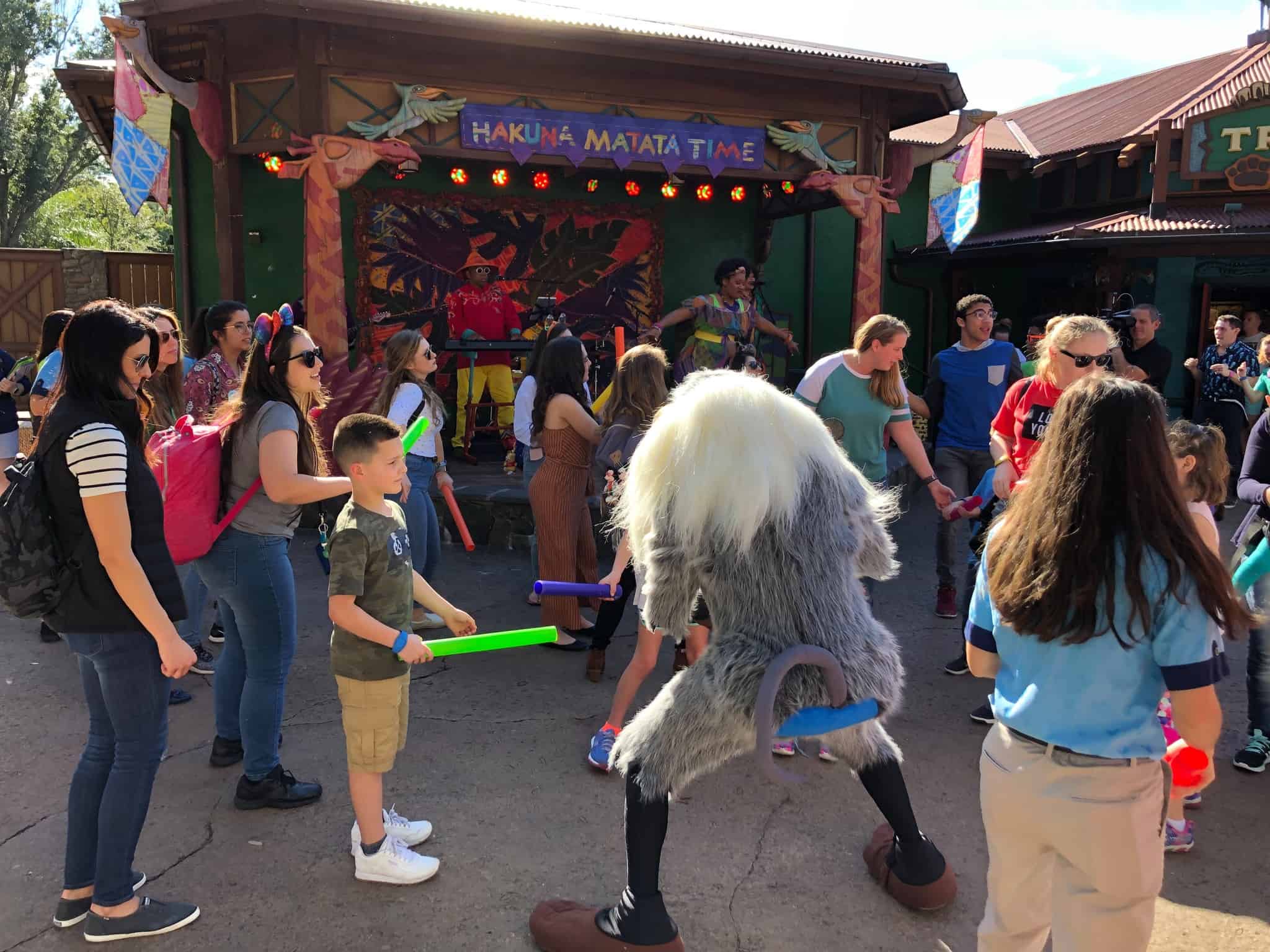 Today marks the start of the 25th anniversary celebration of Walt Disney Pictures’ “The Lion King” at Disney’s Animal Kingdom, along with Timon and Rafiki hosting the “Hakuna Matata Time Dance Party”. Just yesterday, we saw this gorgeous carved wood photo-op go up at the entrance to the park, and there are even more special three-dimensional photo opportunities coming soon as well. True to its name, the Hakuna Matata Time Dance Party encourages guests to let their inner animal roam free on the dance floor. The dance party takes place across from Flame Tree Barbecue daily from 11:30am-5:30pm.