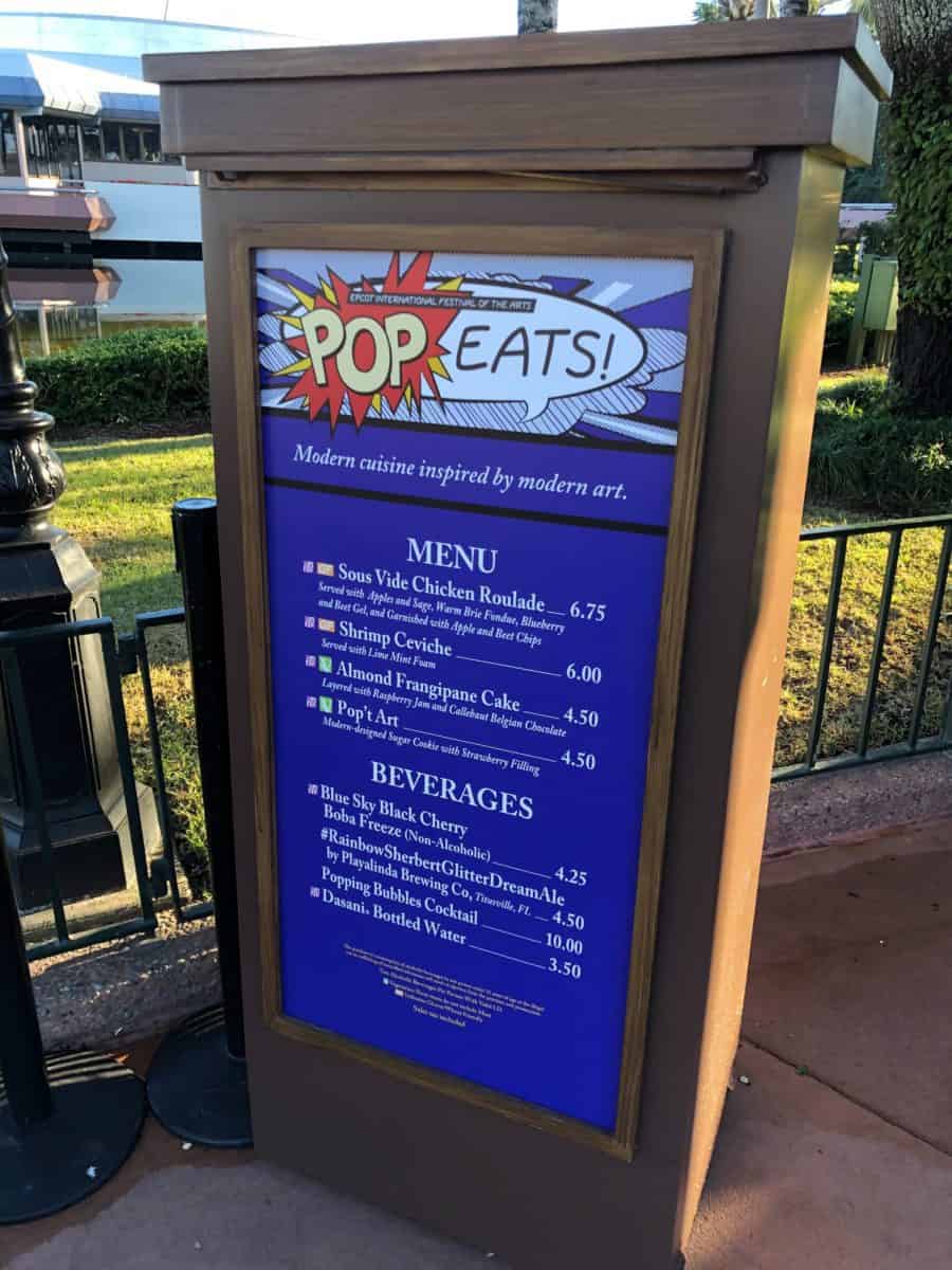 Menu for the “Pop Eats!” Food Studio at Epcot International Festival of the Arts