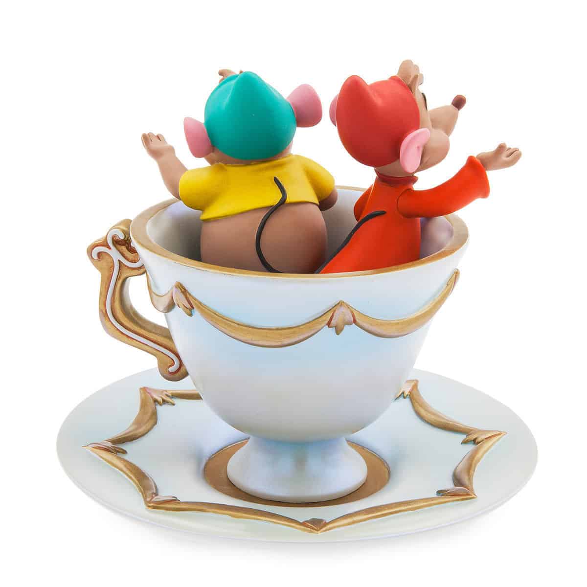 Jaq and Gus from Cinderella are featured in a trinket tray. The two mice appear to sit in a teacup (and not in a crossover with a Disney parks attraction related to another animated film), looming over the small items below.