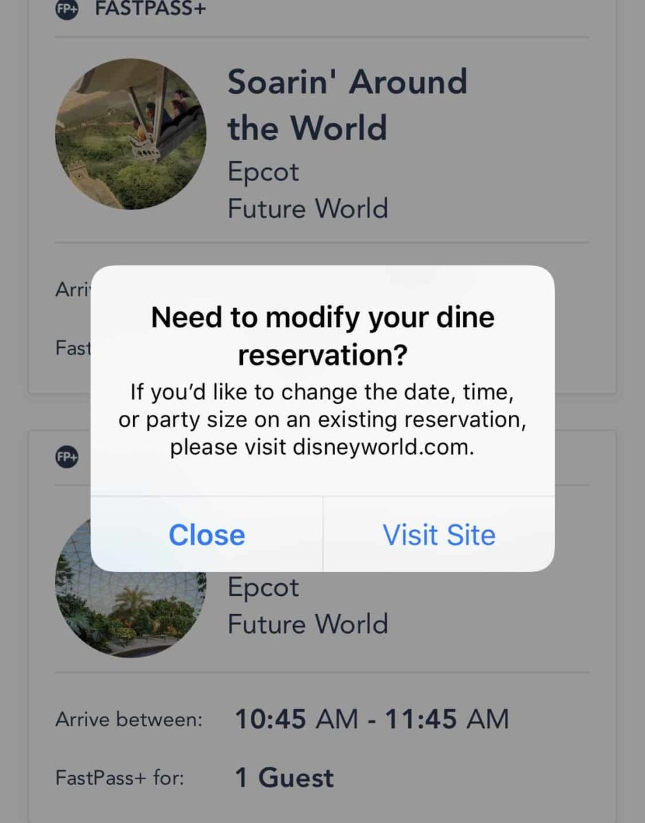 As you can see, the app now instructs guests that they will need to visit DisneyWorld.com to modify an existing reservation. Weirdly enough, the cancellation option remains in the app.