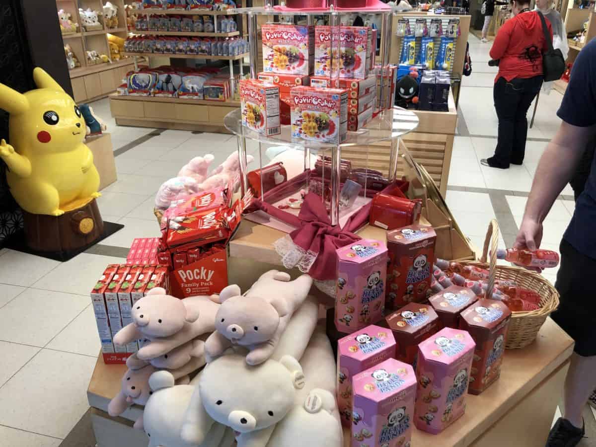 The Mistukoshi Department Store in the Japan pavilion is always prepared for any holiday. They dug up every pink item they had in stock for the front table.