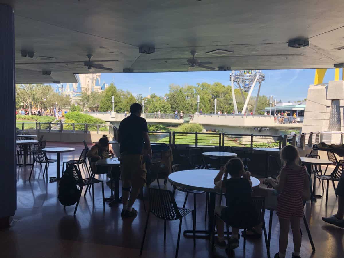 The seating area is shaded and quiet, with a beautiful view of the castle. This is definitely a great place to grab a quick bite and relax away from the crowds for a moment.