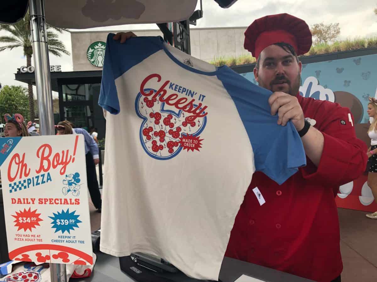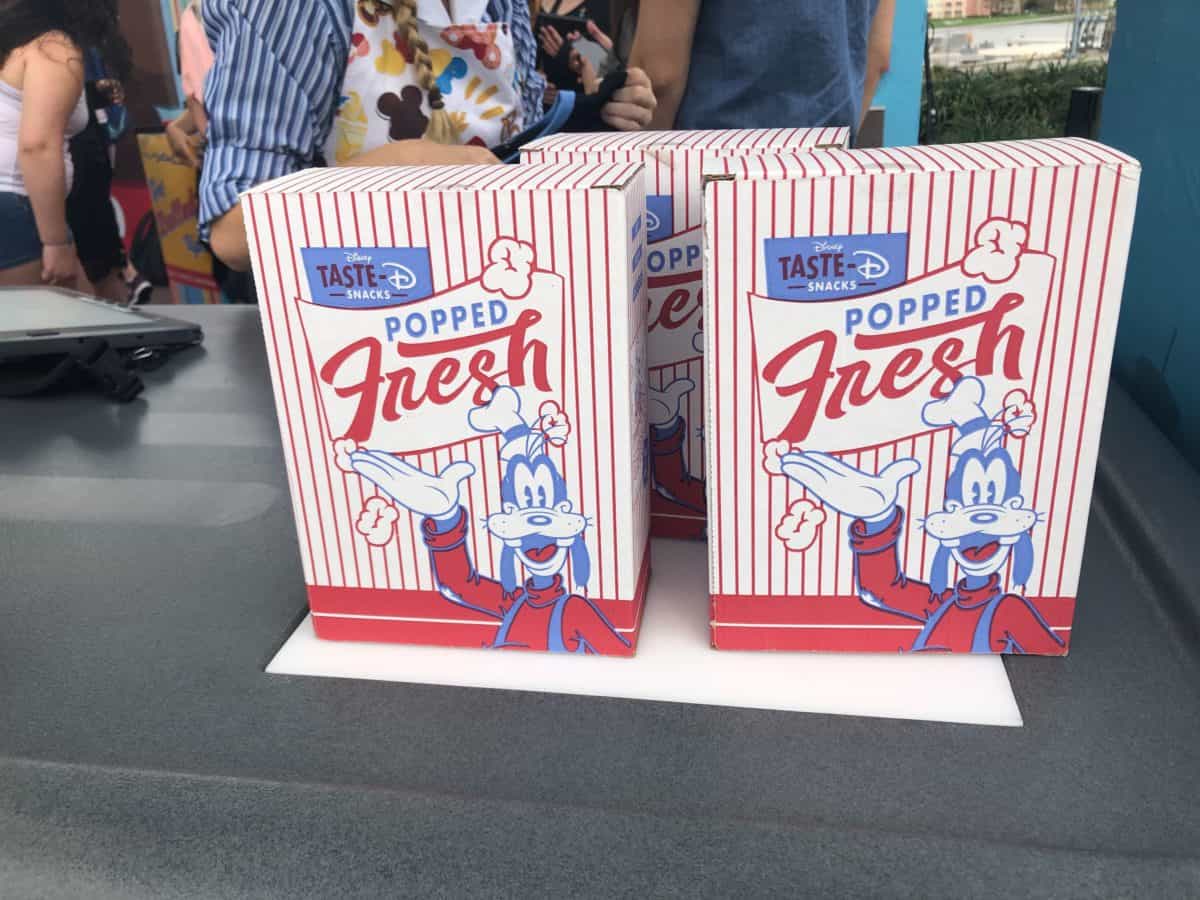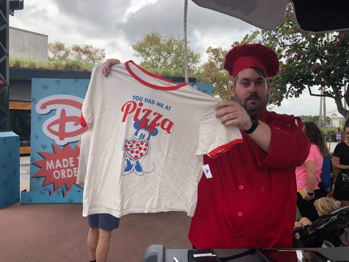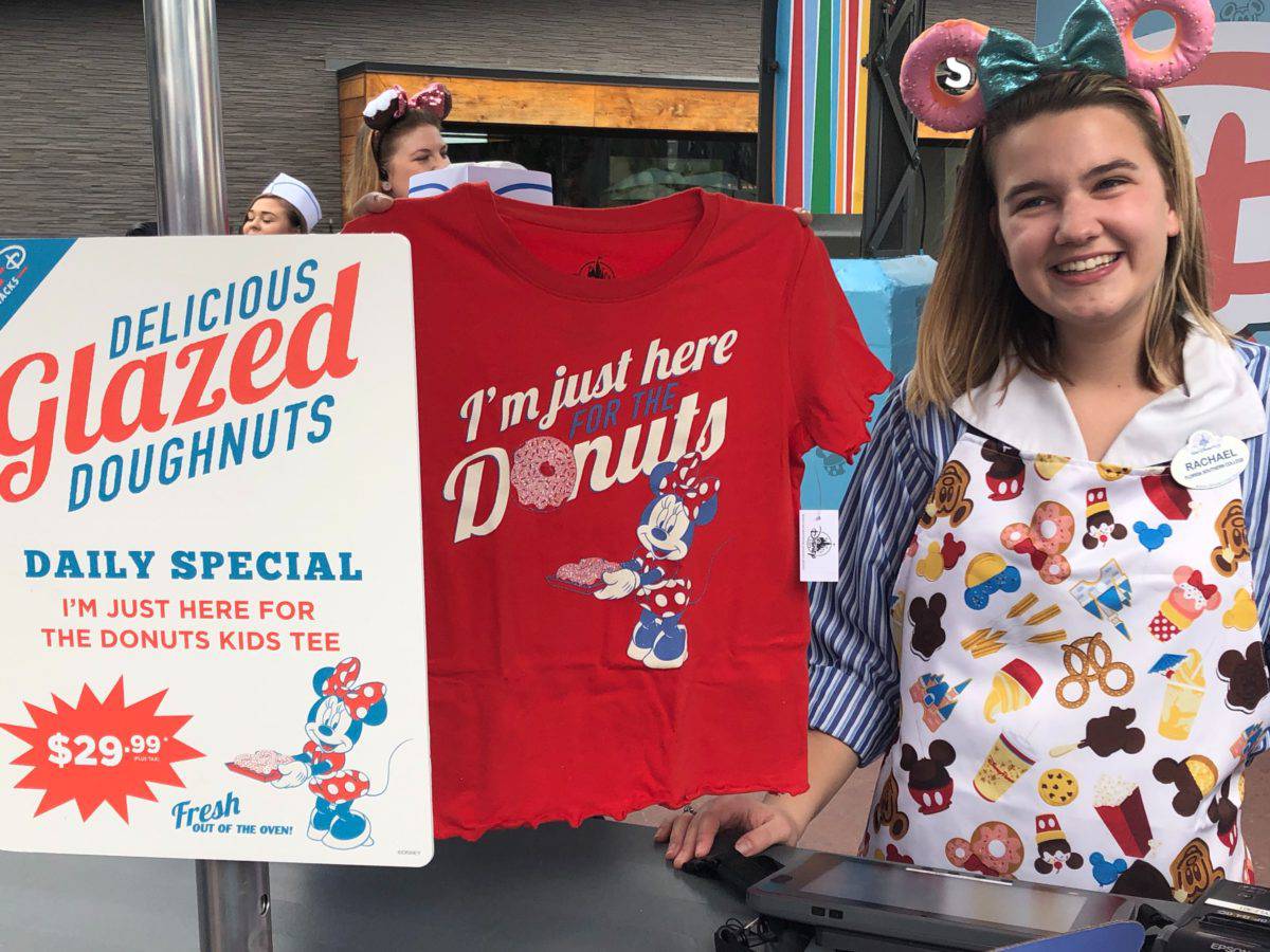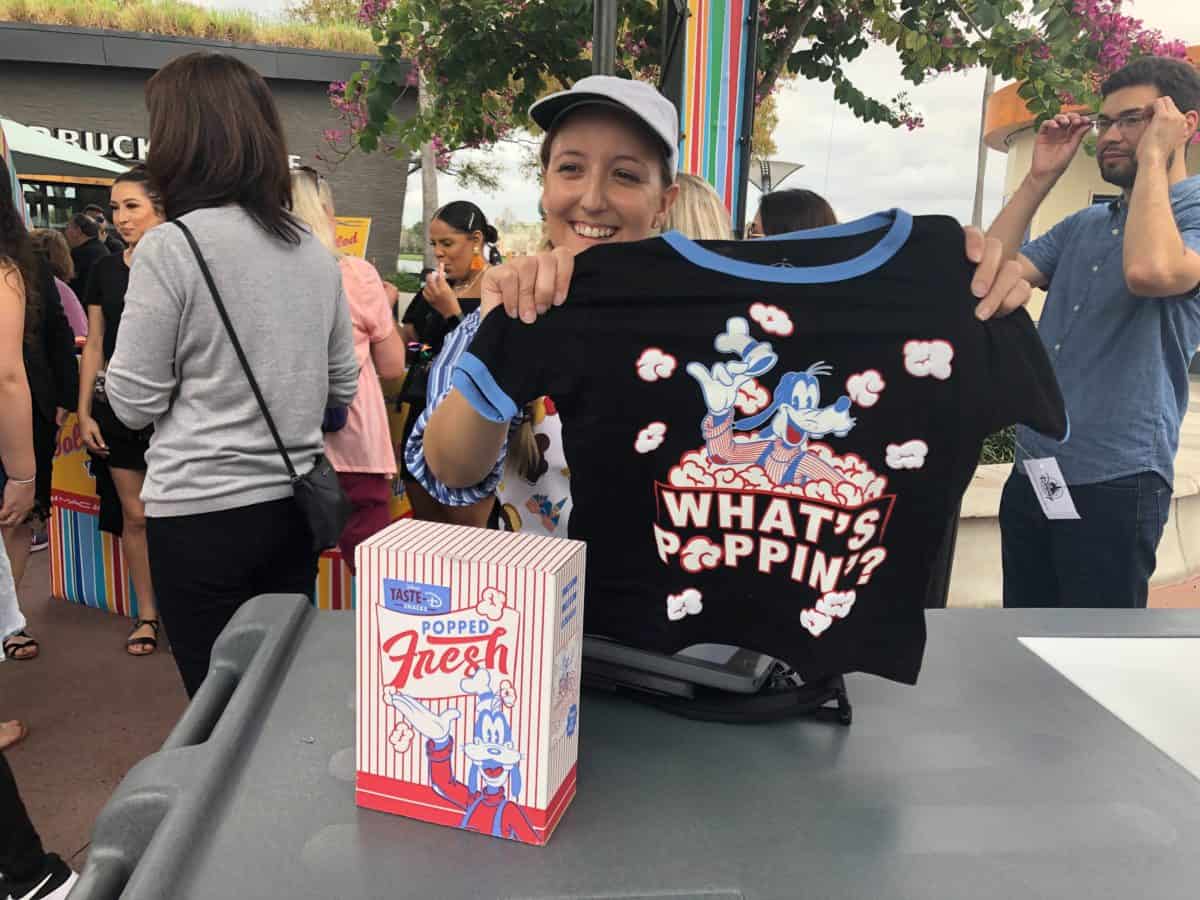 Guests can satisfy their retail cravings by being among the first to shop specialty packaged goods inspired by classic Disney Parks snacks. In keeping with the theme, the shirts are sold out of snack kiosks themed to Disney popcorn, pizza, and cookies.