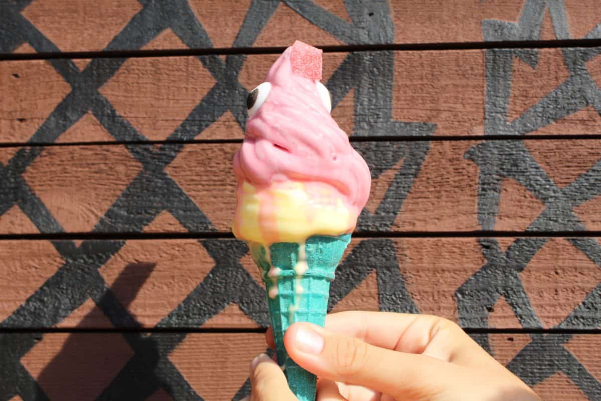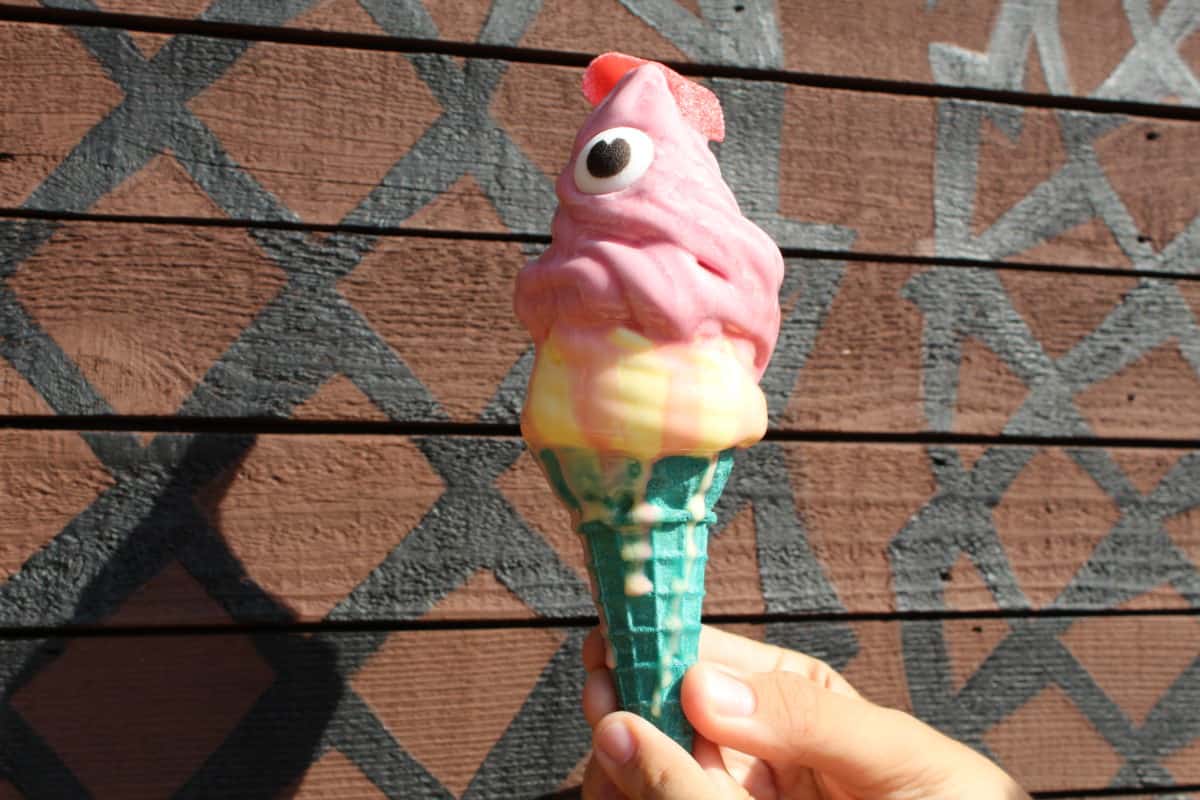 The sour belt was really sour, but added a different flavor to the cone. The eyes were 100% sugar, but actually worked well with the raspberry flavor of the cone. While Dole Whip is incorporated into the cone, it’s a good alternative with different flavors if you’re not in the mood for a full, pineapple-only Dole Whip.