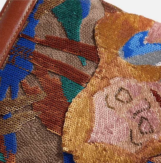 Coming soon! This Signature canvas Riley is a slender silhouette based on an archival 1970s style. The streamlined bag features a dreamy Alice in Wonderland graphic artfully crafted with high-luster sequins.