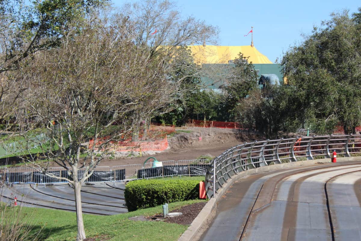 This is part of the area where the Tomorrowland Speedway will meet the new Tron coaster. They’ve cleared all the trees and grass out of the way.