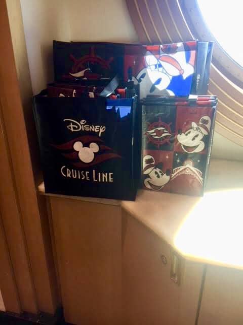 The Disney Cruise Line bags come in three sizes and feature Captain Mickey and Minnie, a beautiful art deco image of the ship, and variations on the Disney Cruise Line logo.