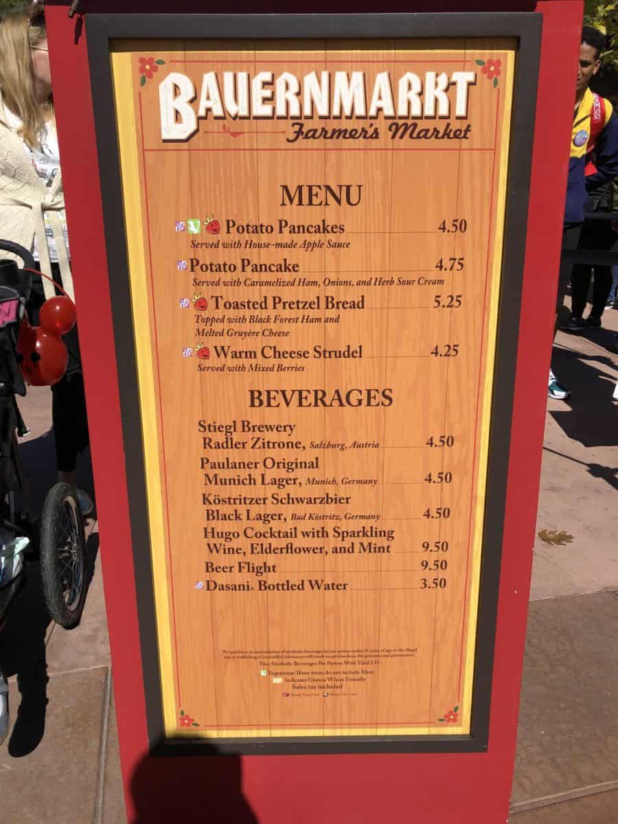 Menu for Bauernmarkt: Farmer’s Market at the Epcot International Flower & Garden Festival
