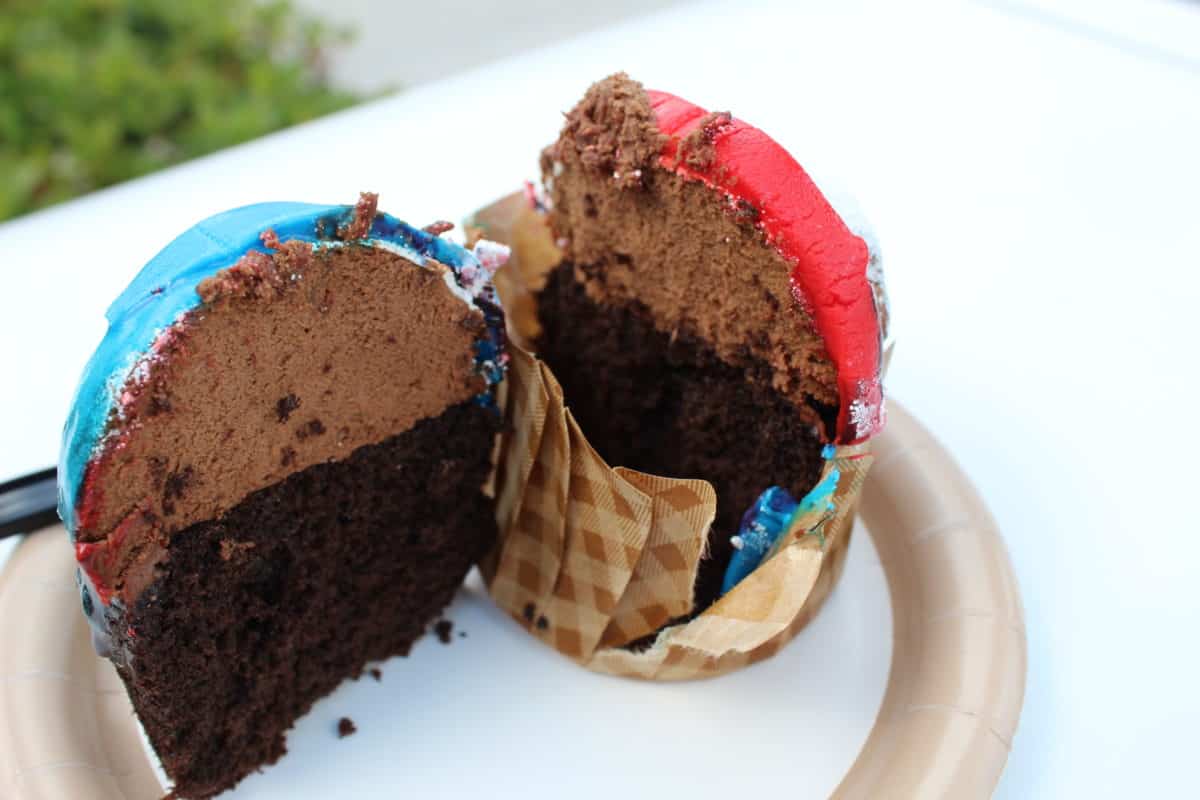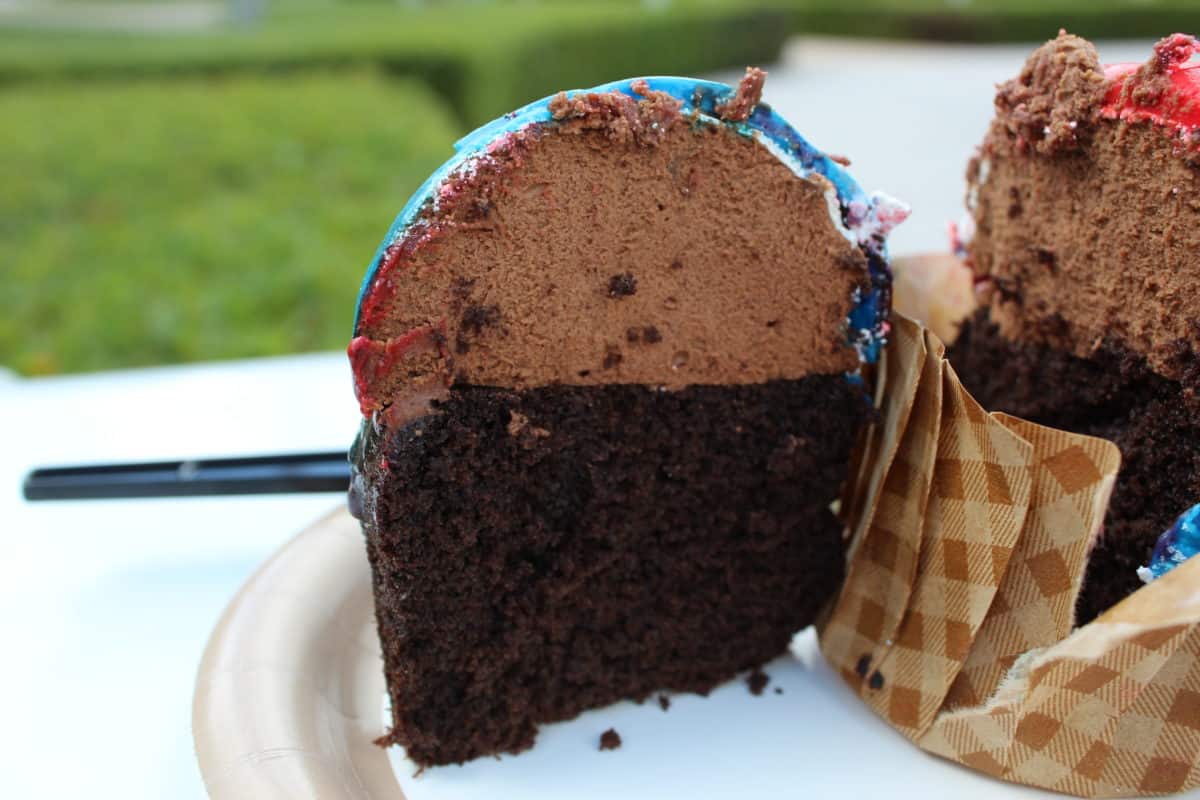 Here you can see the ratio of chocolate mousse to chocolate cake. It’s almost 1:1, and the amount of mousse on top is necessary to give the cake that Herbie/Volkswagen Beetle look, but makes the cake hard to eat. That being said, if you aren’t a fan of mousse, we’d be hard-pressed to recommend this cupcake, because it’s practically 50% mousse.
