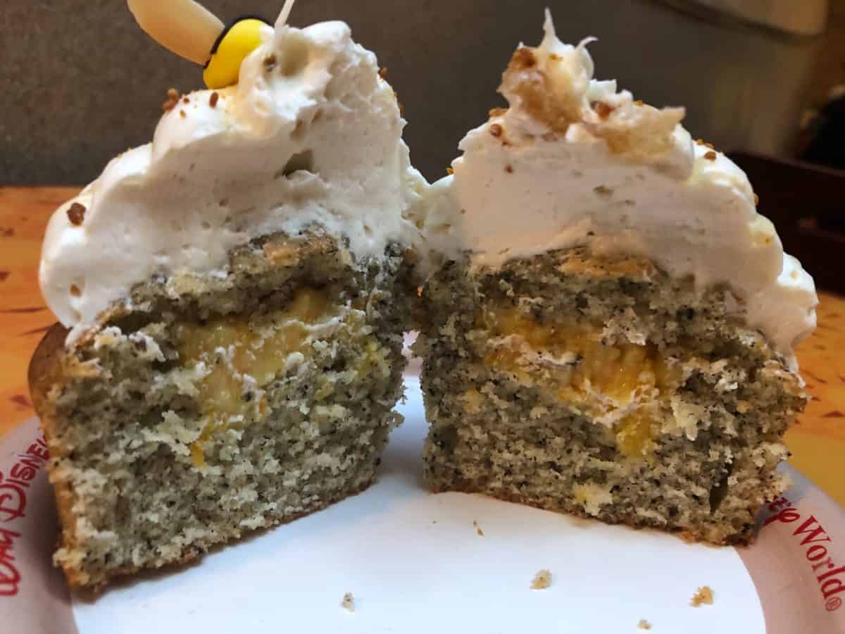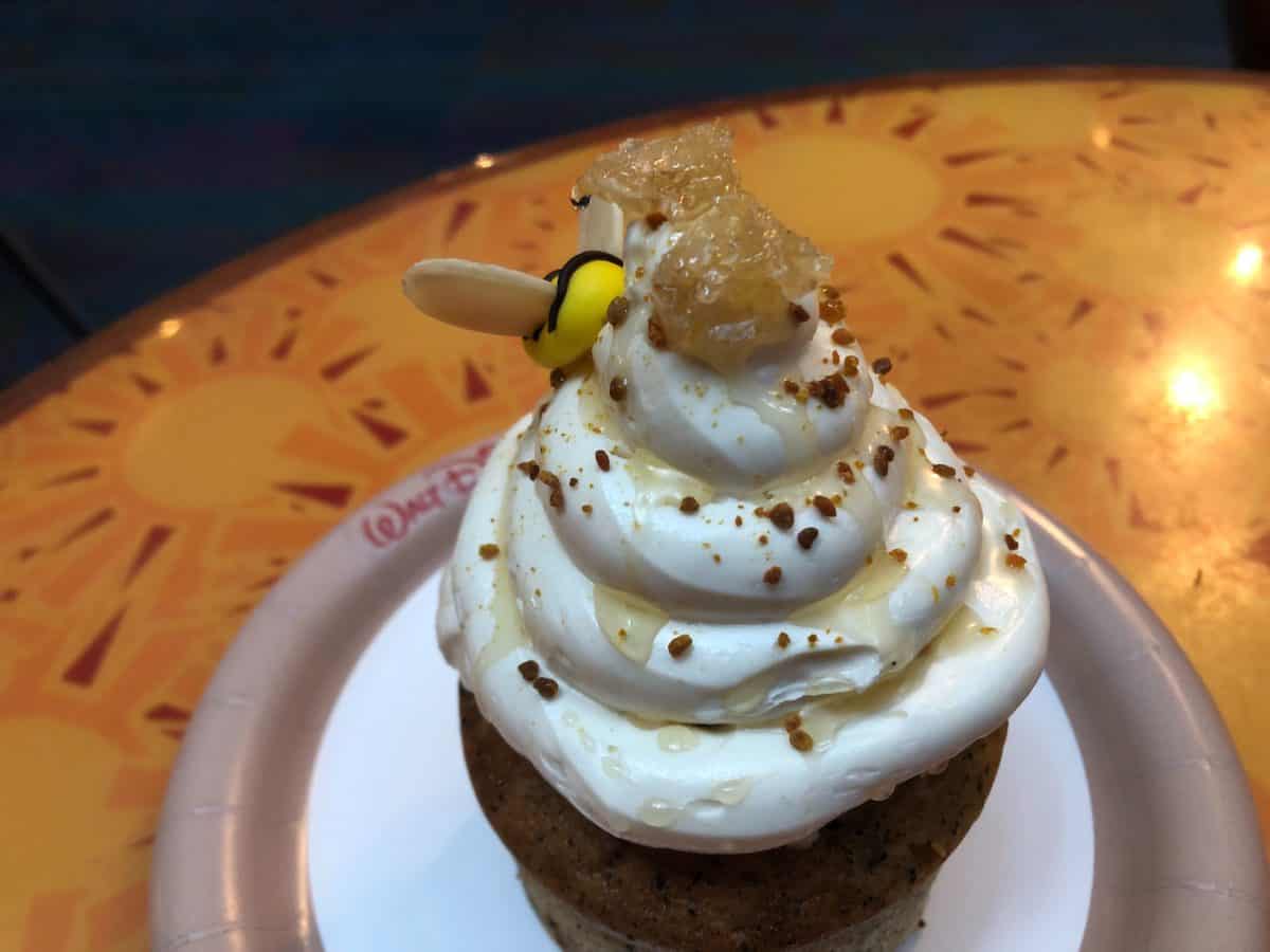 All in all, we highly recommend this cupcake. Sunshine Seasons is the unsung hero of Epcot cupcakes and there really isn’t a cupcake we haven’t thoroughly enjoyed from this spot. For about $6.00 with tax, you can get a giant, shareable cupcake that’s piled high with natural, non-food-coloring-laden toppings. (Bee pollen and honey comb aren’t exactly cheap, either, so you’re getting quality ingredients here!) Don’t let the tea aspect of it scare you, either. We assure you, this is still a delicious treat!