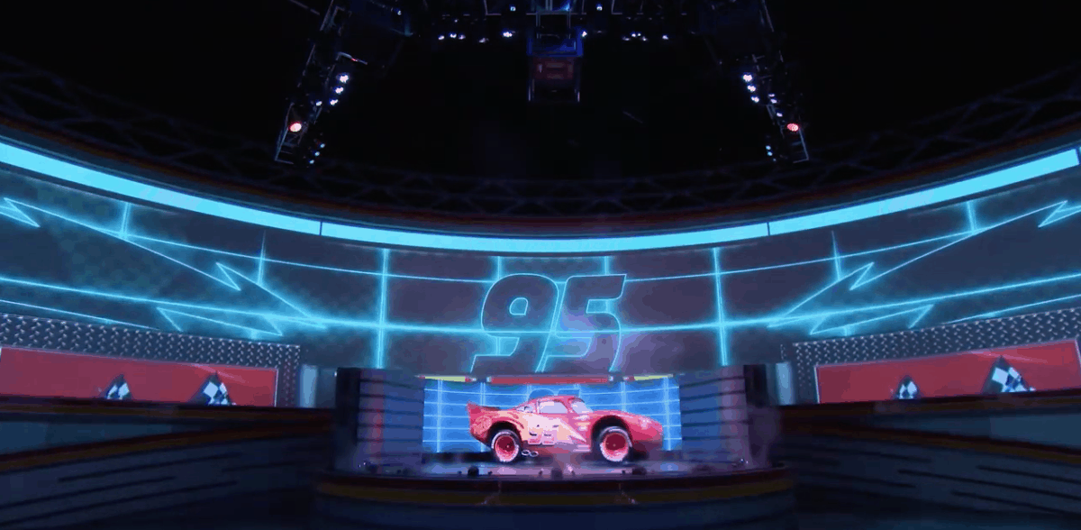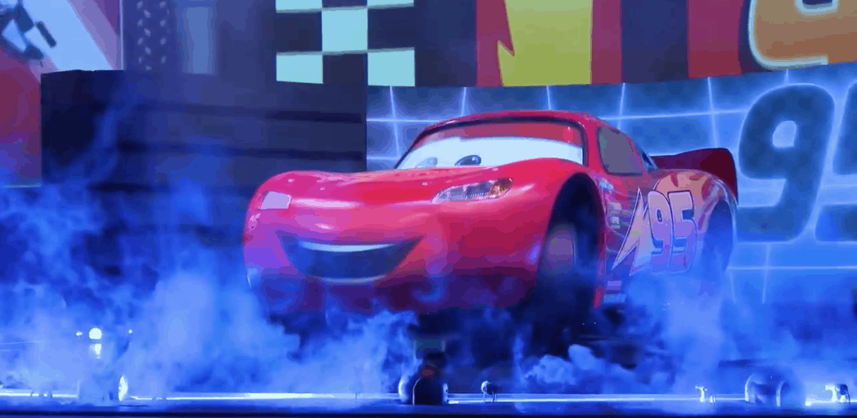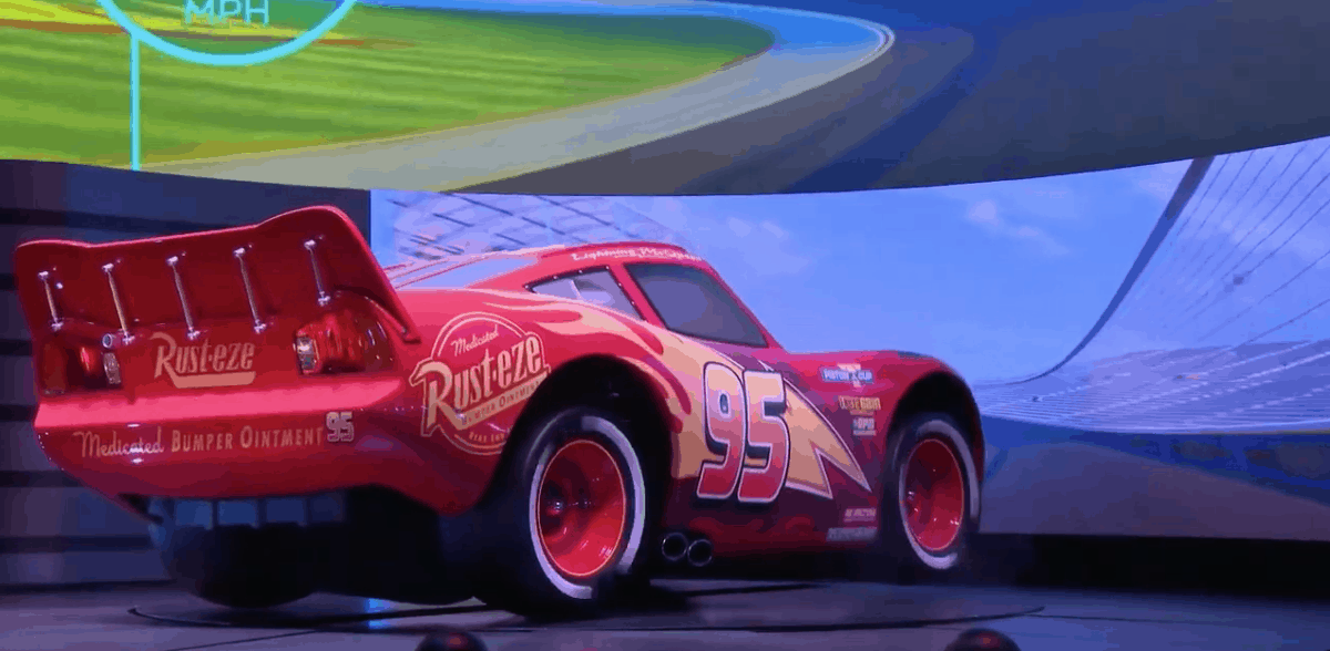 As part of their press package released earlier this morning, we got a few stills of Lightning McQueen making his big debut onstage at Lightning McQueen’s Racing Academy in Disney’s Hollywood Studios. Little did we know that there was also this short video of B-roll that was collected during show testing earlier this week. You may not get to hear the dialogue, but it’s impressive to see how shiny Lightning looks, as well as how fluid and impressive his animatronic is!