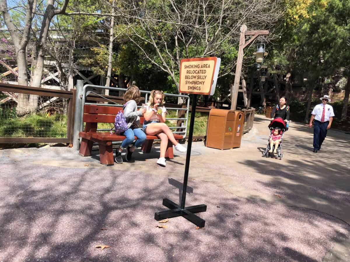 The smoking section in DCA has been moved to below Silly Symphony Swings where the AP Corner had previously been. Smokers take note that starting May 1st, Disneyland Resort will be smoke free.