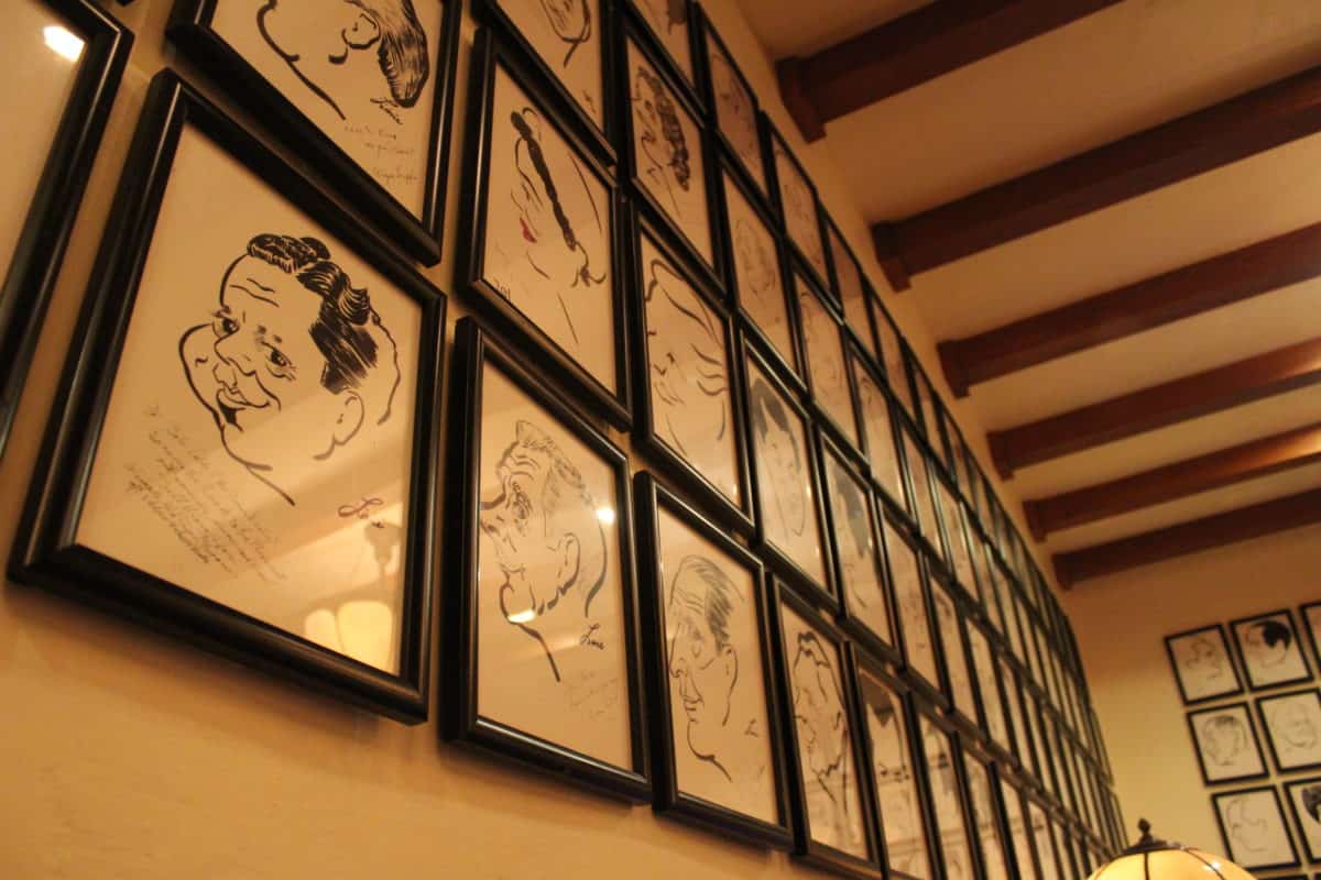 The walls are lined with caricatures of famous actors, just like the original restaurants were.