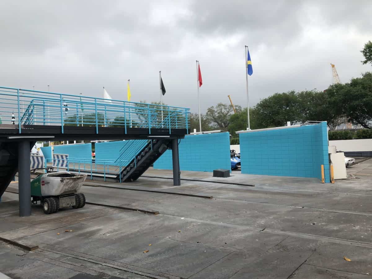 Since Cinderella’s moat is pretty empty right now, and it seems like Cosmic Ray’s is getting a cleaning and a fresh coat of paint. High reaches are out in the dry moat area so the crew can get to the walls around the outside.