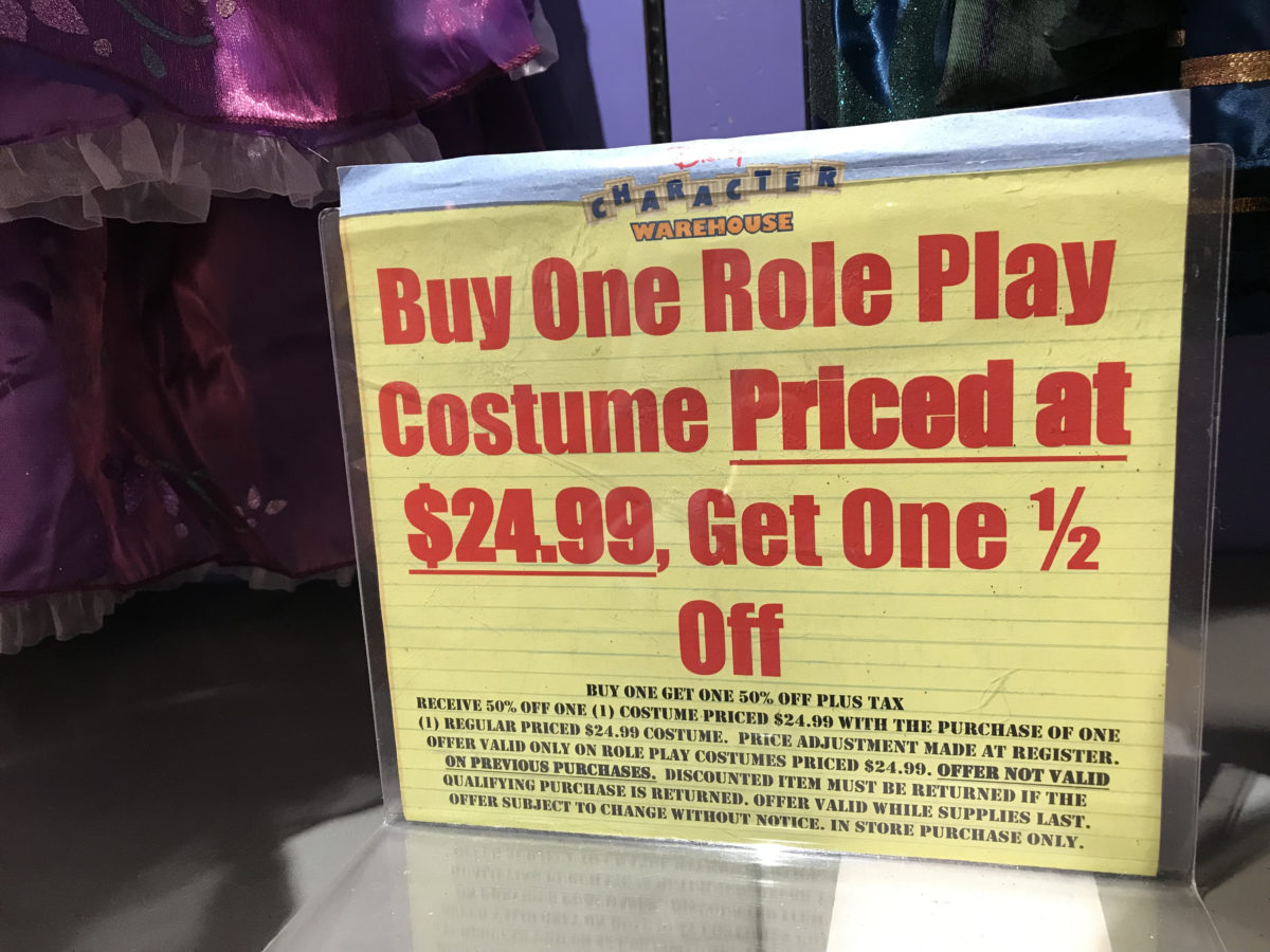 As always, there are tons of costumes. This time around, though, they’re bogo. Buy one at $24.99, get one half off.