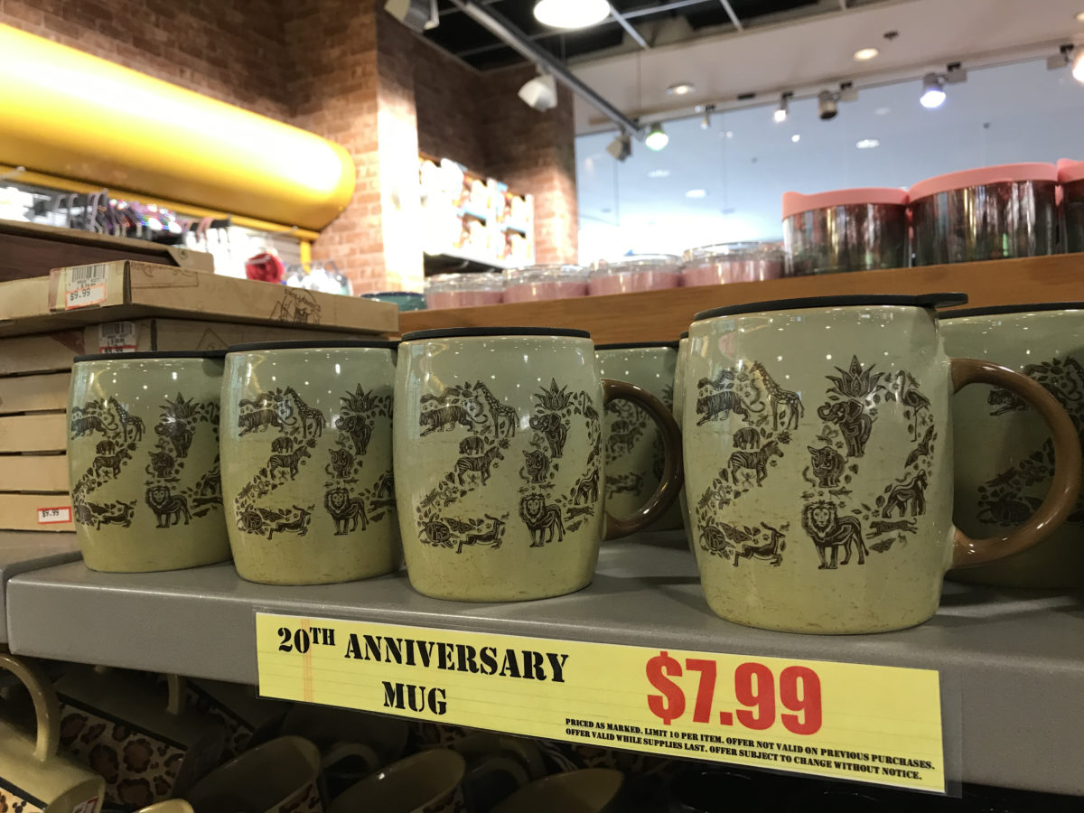 Very large 20th Anniversary Animal Kingdom travel mugs were just $7.99.