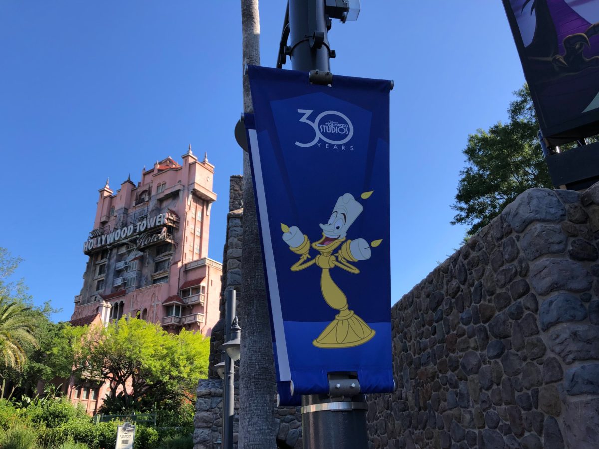With Disney’s Hollywood Studios celebrating its 30th birthday on Wednesday, the final decorative banners are going up around the park to mark the occasion. Decorations representing Beauty and the Beast – Live on stage and Fantasmic can now be found along Sunset Boulevard: