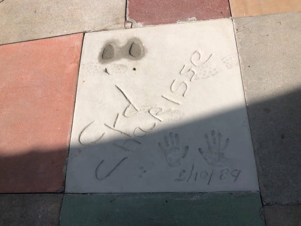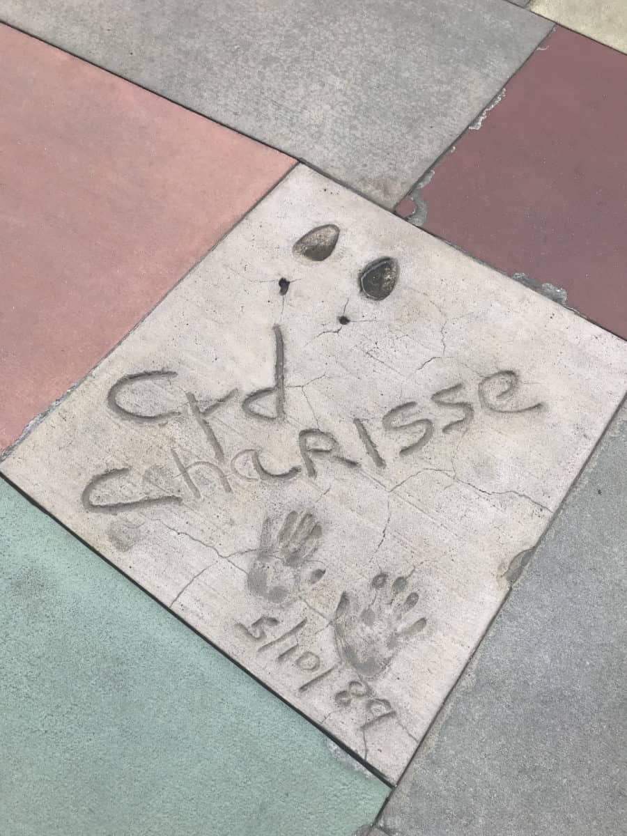 For reference, here’s what Cyd Charisse’s handprint looked like before: