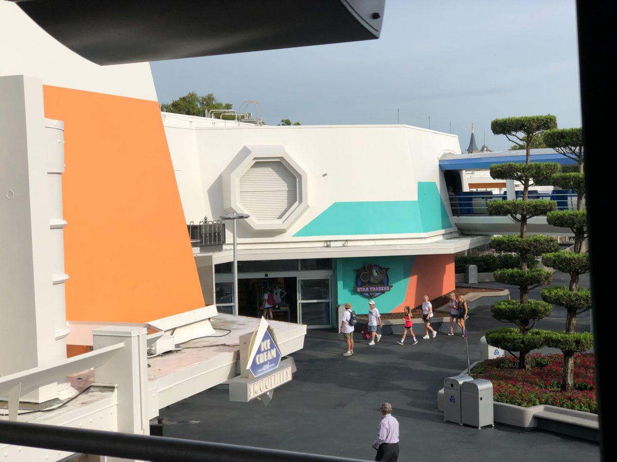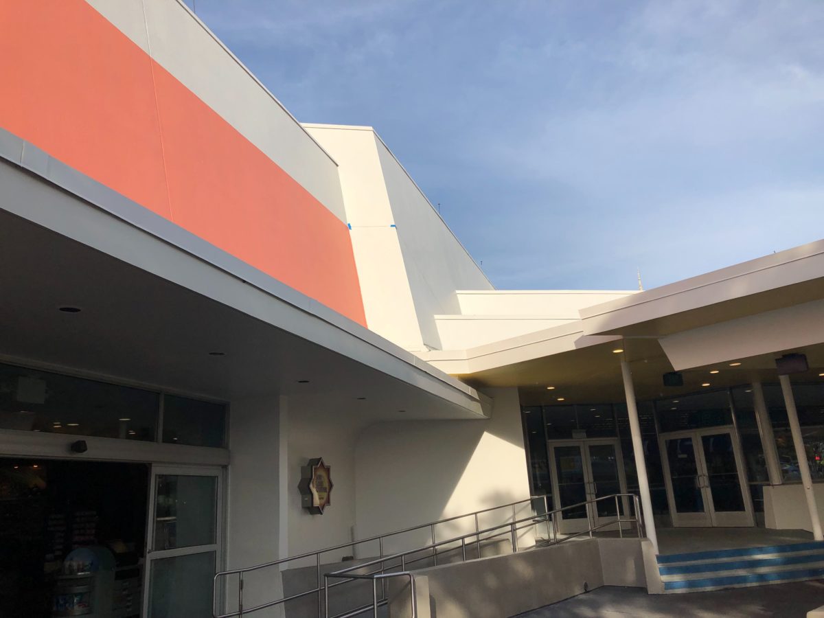 As part of the ongoing refurbishment (and overhaul) of Tomorrowland in preparation for the opening of the Tron Lightcycle Power Run that’s set to open just in time for Walt Disney World’s 50th anniversary in 2021, new paint is showing up all over Tomorrowland. There’s new paint on the Speedway, pops of orange and teal across Tomorrowland itself… and new to the revamped Tomorrowland palette is this punchy peach color.