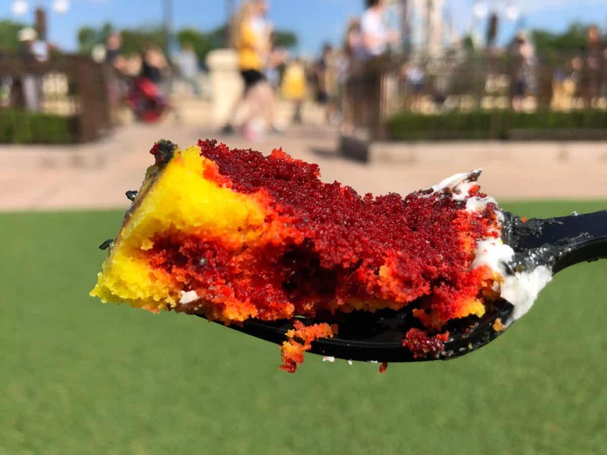 Attention, Mouseketeers! It’s time for your weekly dose of food coloring. Walt Disney World announced that this new cupcake would be making its big debut at the Main Street Bakery in the Magic Kingdom and we decided to check it out for you… but we never expected it to be this big behemoth piled high with frosting.