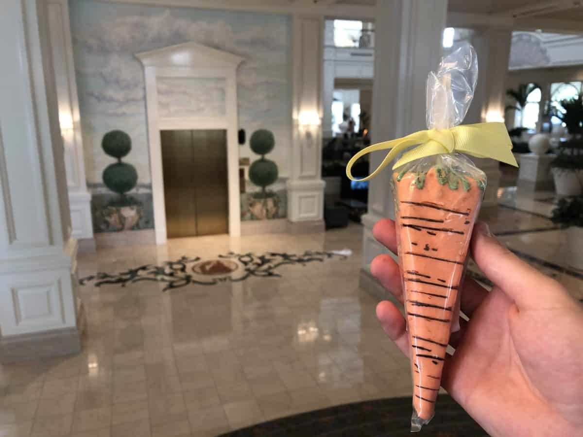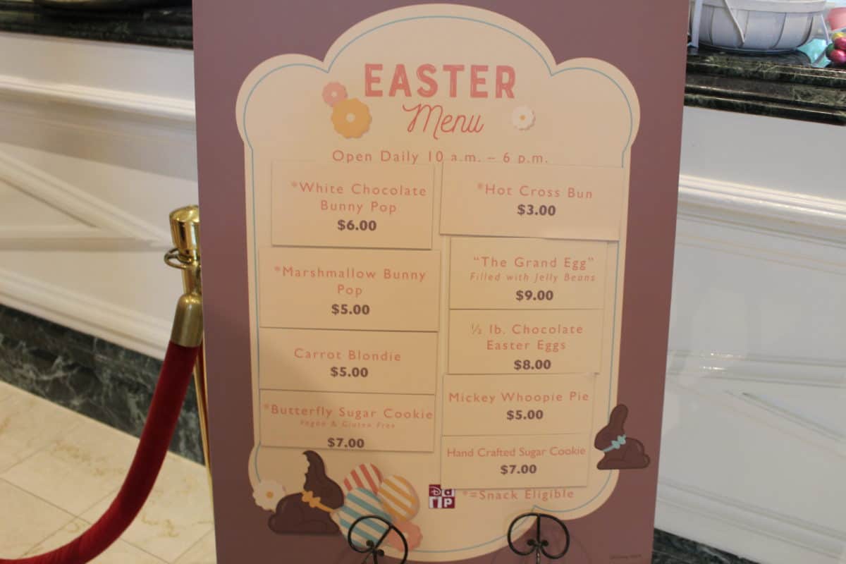 Earlier in the week, we brought you coverage of the 2019 Easter Egg Display at the Grand Floridian. Today, we returned to the beloved resort to try out the new Easter treat stand! The stand is located just as you enter the main lobby, off to the right. They operate daily from 10 A.M. – 6 P.M. for all your Easter treat needs.