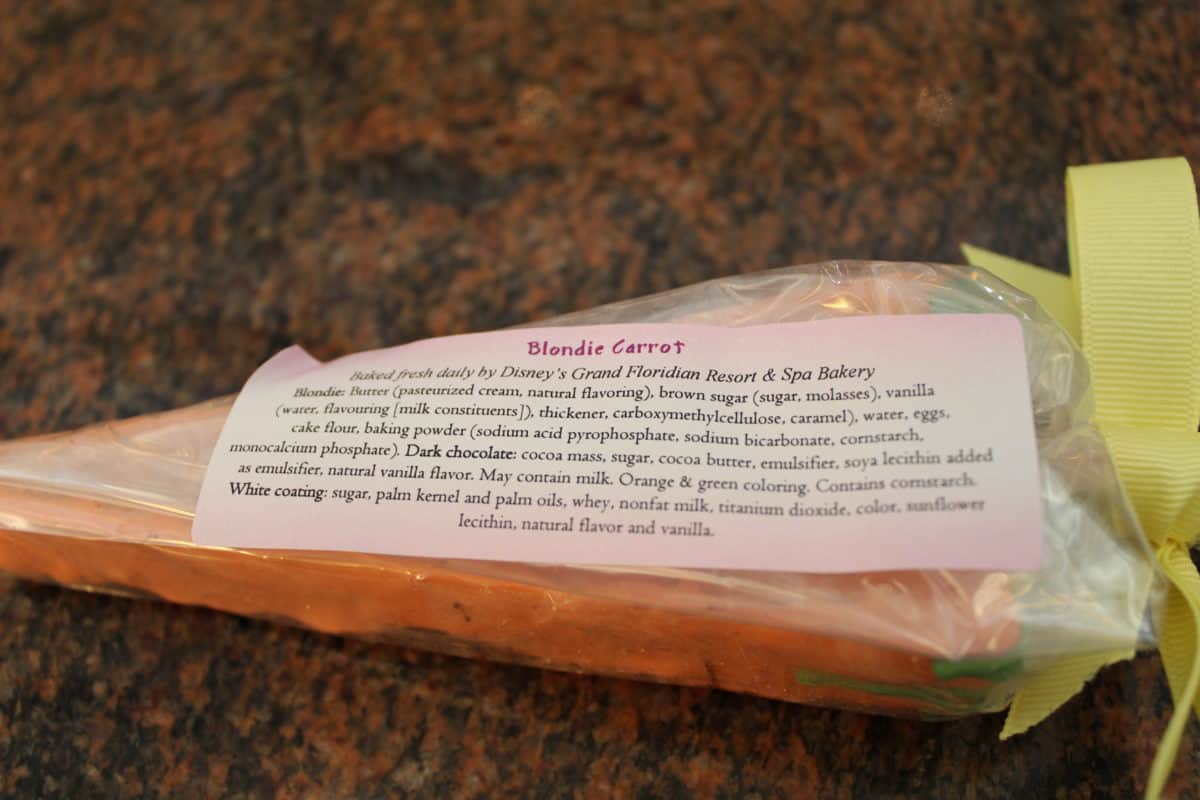 This offering was too good to pass up on. It was beautifully presented in cellophane with a gold Grand Floridian sticker and blue ribbon, and dusted with orange specks. I was also pretty intimidated by the jelly bean filling.