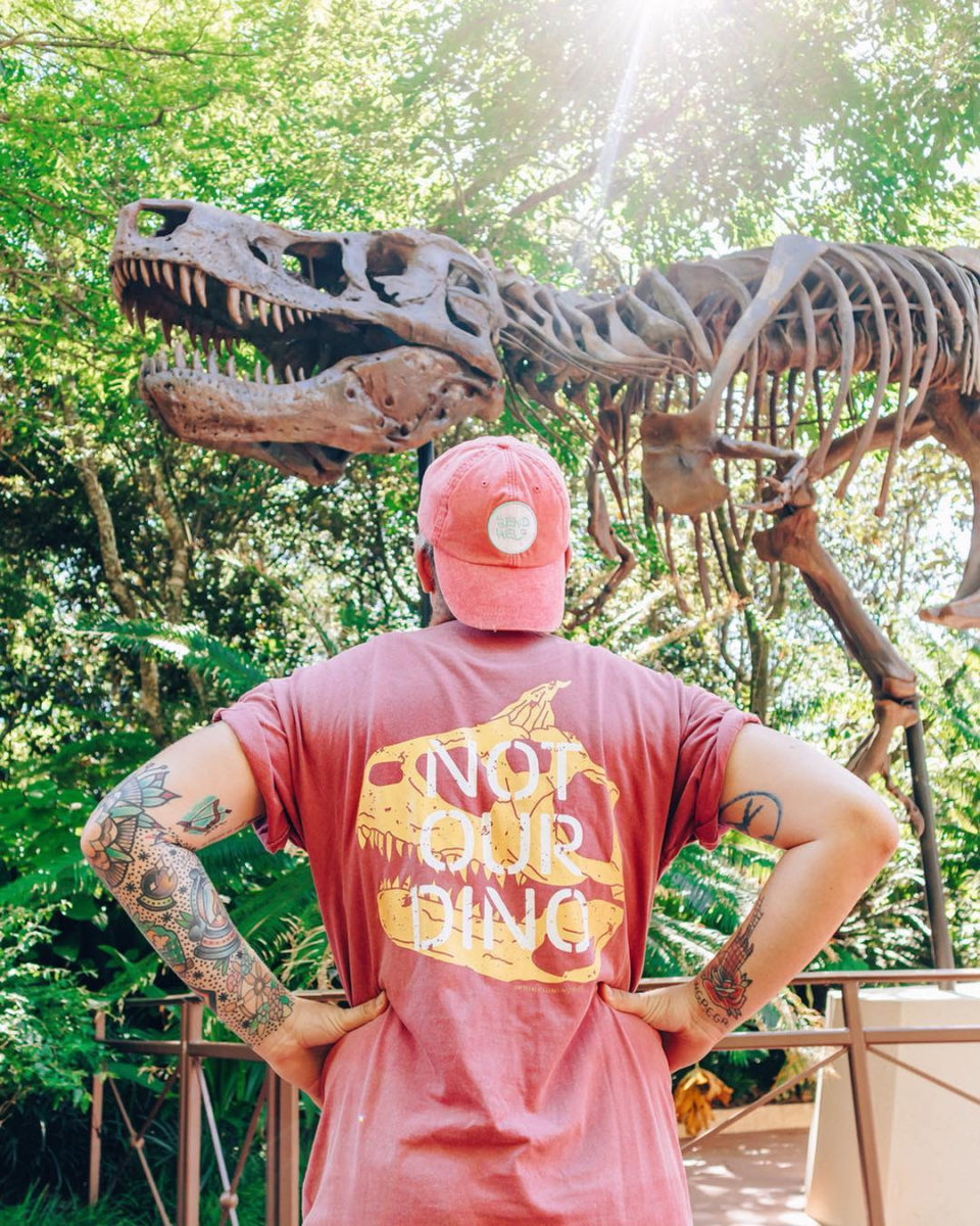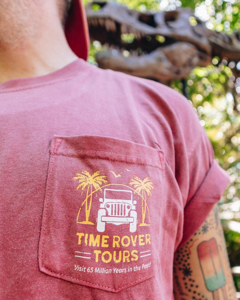 We’re not gonna make it! We’re not gonna make it! Oh, wait. We made it. Dr. Seeker’s Time Rover Tours is a blast to the past. Just make sure you leave with the right dino. When you purchase this Not Our Dino Pocket Tee, in celebration of loving our planet earth, a portion of all proceeds will be donated to the Disney Conservation fund.