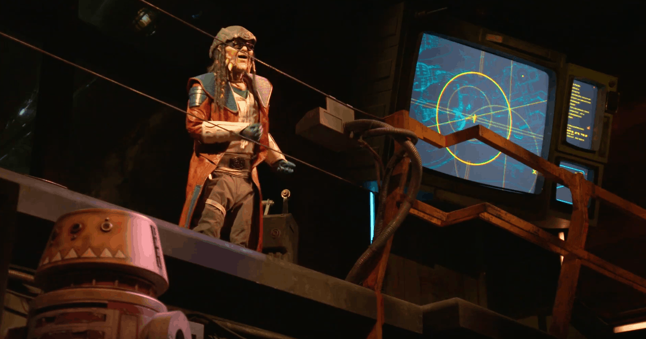 The owner of Ohnaka Transport Solutions, Hondo sets the scene, telling travelers why you’re there and what you have in store. The dearest of old friends, Chewbacca, makes an appearance during the pre-show, begrudgingly dropping off the legendary Millennium Falcon for our dubious use. Three roles are detailed––pilot, gunner, and engineer––which guests will assume to accomplish their mission. Guests learn more specifics in the Cast Member interaction referenced above. For now, you may read about the entire adventure in these First Impressions.