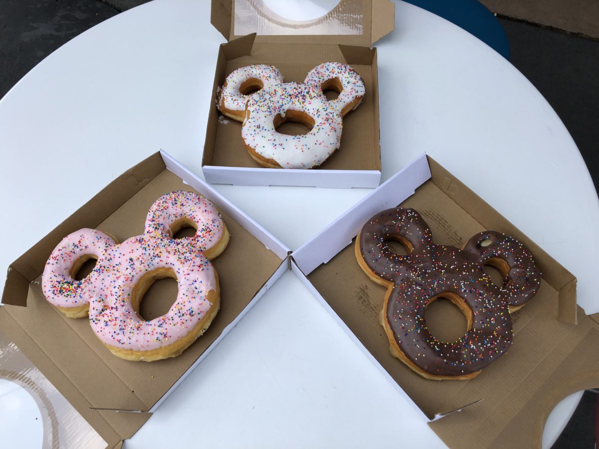 Hey, check out these giant donuts. They’re huge. Gigantic. Quite large. Oh, they’re also shaped like Mickey Mouse.