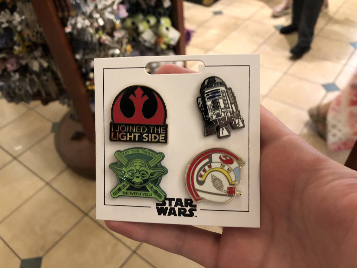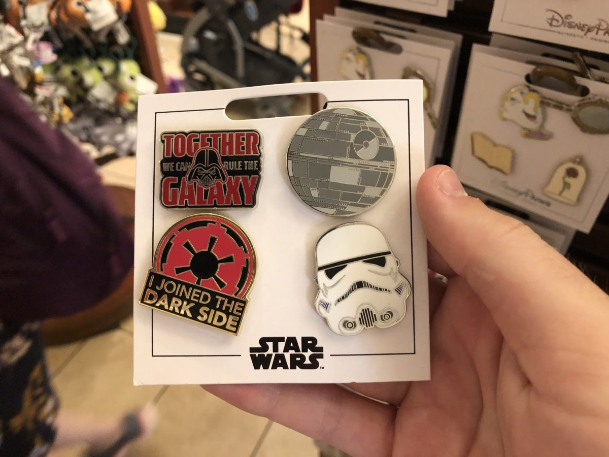 There are also two new Star Wars four-pack pin sets at the Emporium. One represents the Light Side, and the other represents the Dark Side. ($24.99 each.)