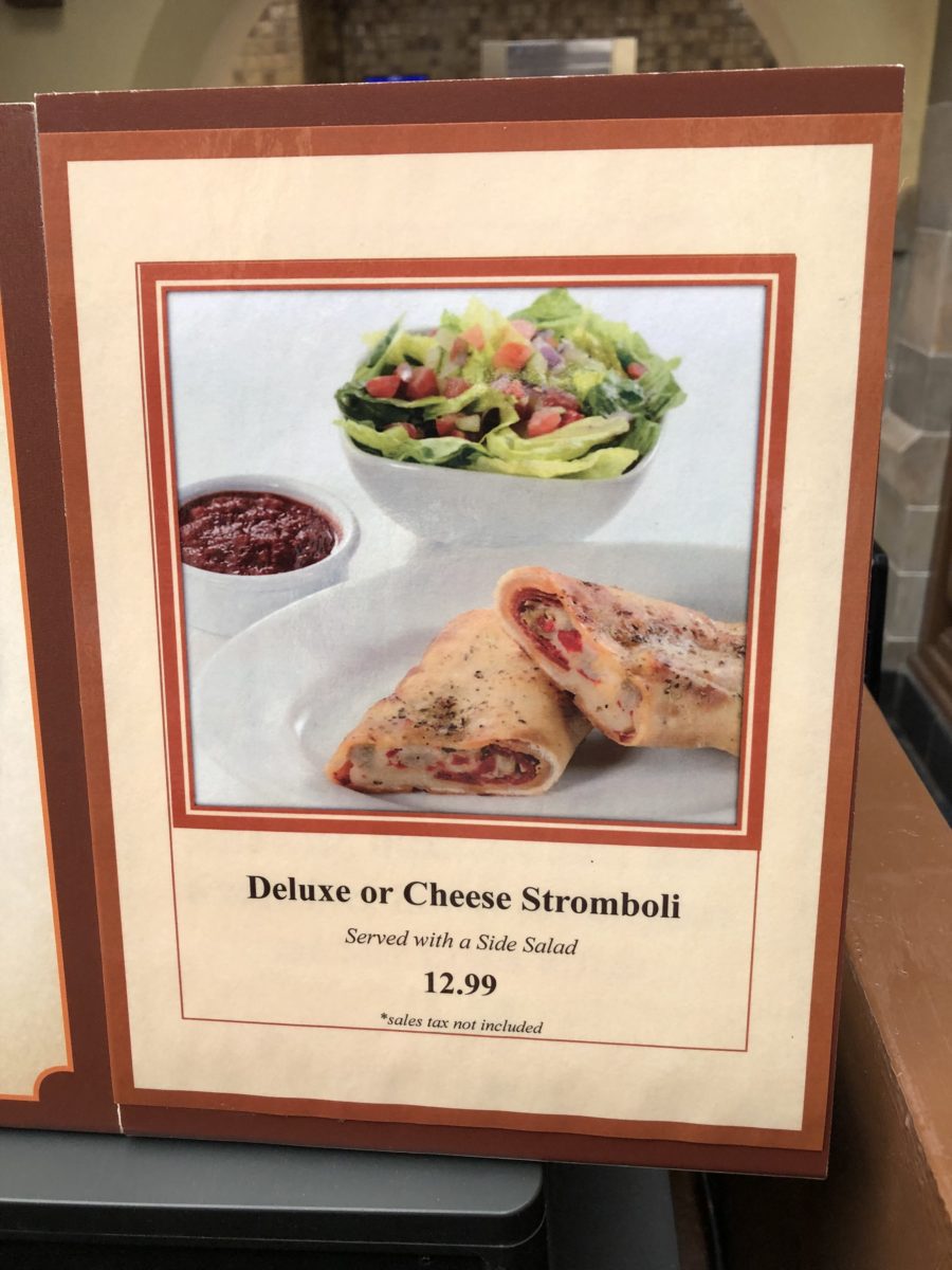 At Pinocchio Village Haus, the Deluxe or Cheese Stromboli are now being sold during lunch. They were previously only available for dinner.