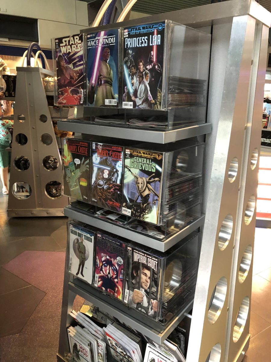 At Tomorrowland Light and Power Co., we recently spotted the Galaxy’s Edge #1 Comics. They’ve since sold out and are no longer available at this store. They are, however, available at Launch Bay Cargo at Disney’s Hollywood Studios.
