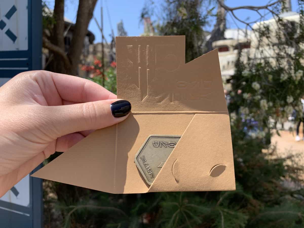 Given that you’re bound to spend at least $100 in the land between food, beverage, and merchandise, this is a must-have item for anyone looking to add even more immersion to their experience in Batuu. The gift card can also be used at other Disney destinations in the US, Canada, and Puerto Rico. We found it at the registers inside of Droid Depot.