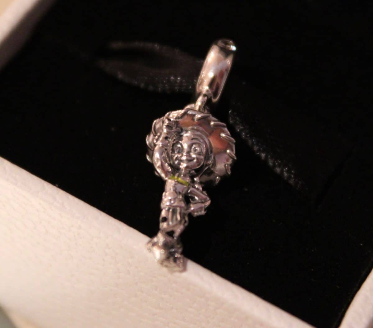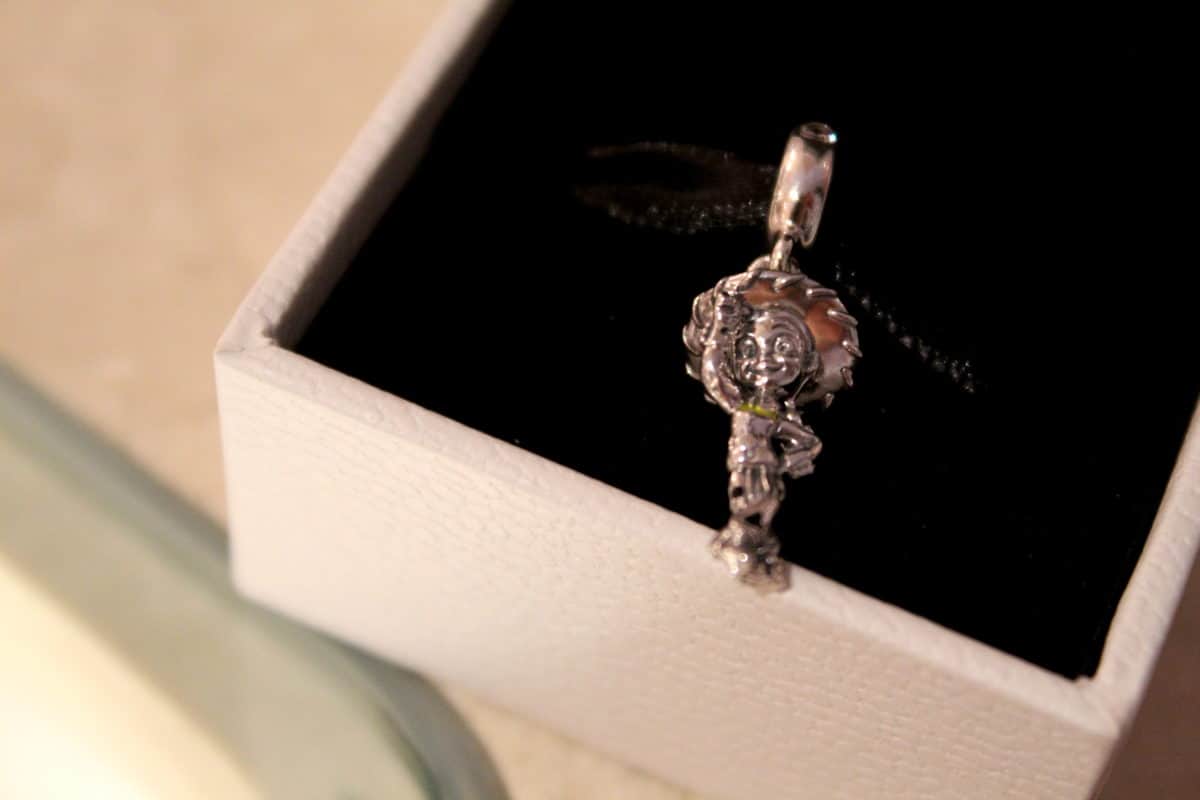 The interesting thing about the Buzz charm is that it has little hinges, which means he can actually move! Buzz moves his arms and space suit torso/legs. The added mobility will come at a price, though. The Buzz charm costs $70.00. The part of the charm that attaches to the bracelet reads, “To infinity and beyond!”