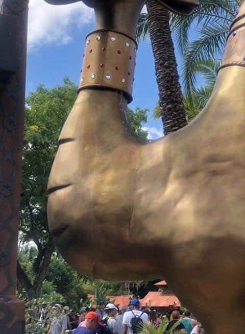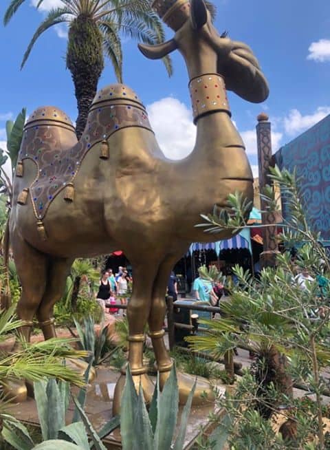 She is beauty, she is grace. Our spitting beauty is back! After undergoing for refurbishment for a few months, the beloved Spitting Camel of Adventureland is back, and just in time for the sweltering heat, too. The spitting statue has been a staple of The Magic Carpets of Aladdin since 2001, and while we were shocked to see her go, we’re happy she’s back. Reader Joseph Kokenge was nice enough to share photos of the Bactrian beauty’s return.