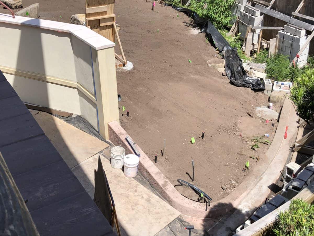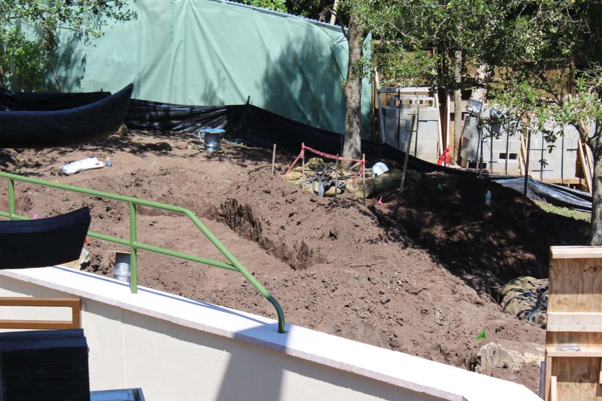 They’ve got some space dug up here, I’m hoping it’s for a water feature of some sort. There were visible pipes around this area for a long time until they covered it with dirt.