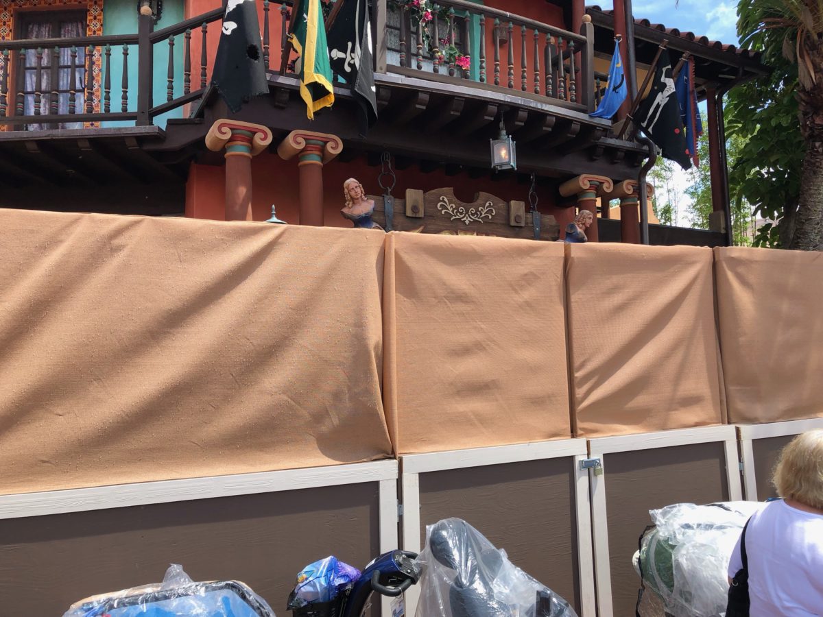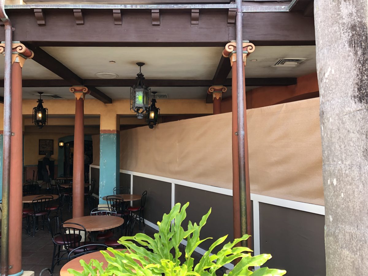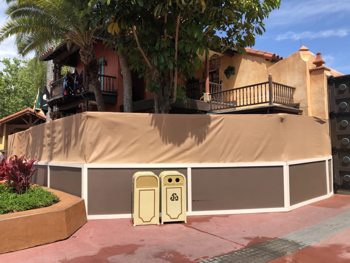 On a tour around the Magic Kingdom this morning, we noticed that walls were up around Tortuga Tavern. While no official refurbishment is listed on the Walt Disney World website, it appears they may be doing some work on the outside patio and possibly the interior.
