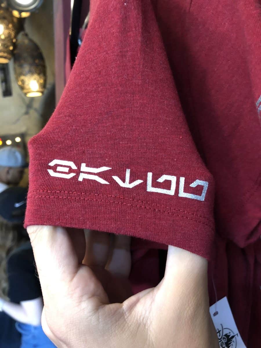 The items sold here do not have anything related to Star Wars: Galaxy’s Edge printed on them, as they will be sold outside of the Black Spire Outpost in other locations in Disneyland.