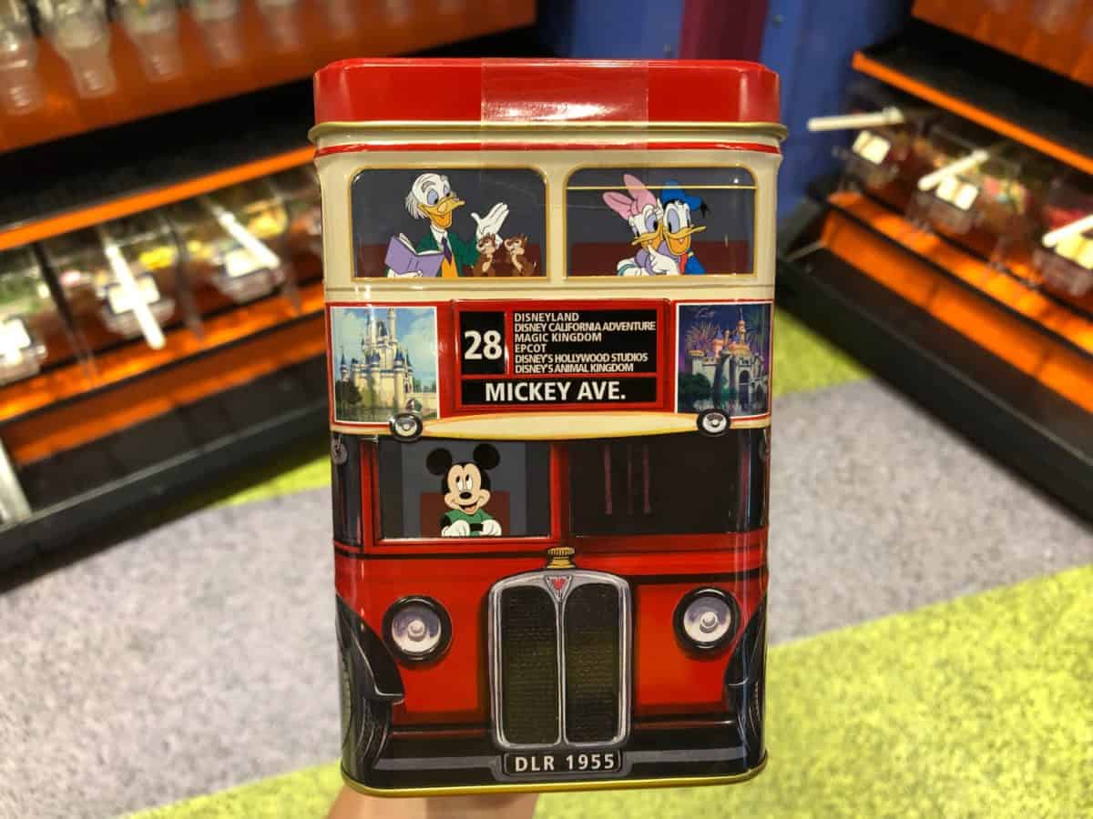 While visiting Goofy’s Candy Co. at Disney Springs, we spotted this new tin of cookies, and definitely had some flashbacks to the old double-decker buses that used to go around World Showcase at Epcot. Talk about nostalgia!
