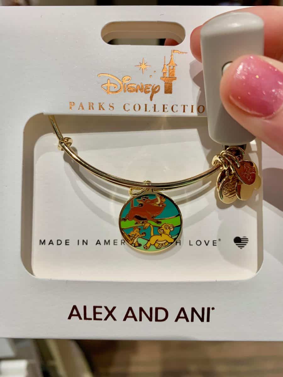 First off is this adorable double-sided charm bangle starring Simba, Timon, and Pumbaa traipsing through the jungle.