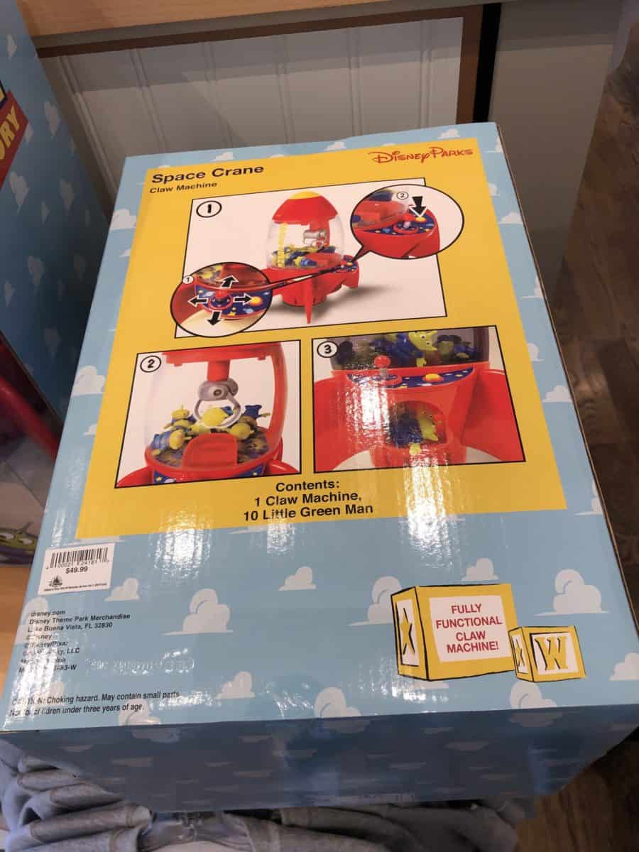 That’s right, this fully functional claw machine is now available at Disney Parks. The packaging is adorable, too. It features Woodie, Jessie, and cute Little Green Man.