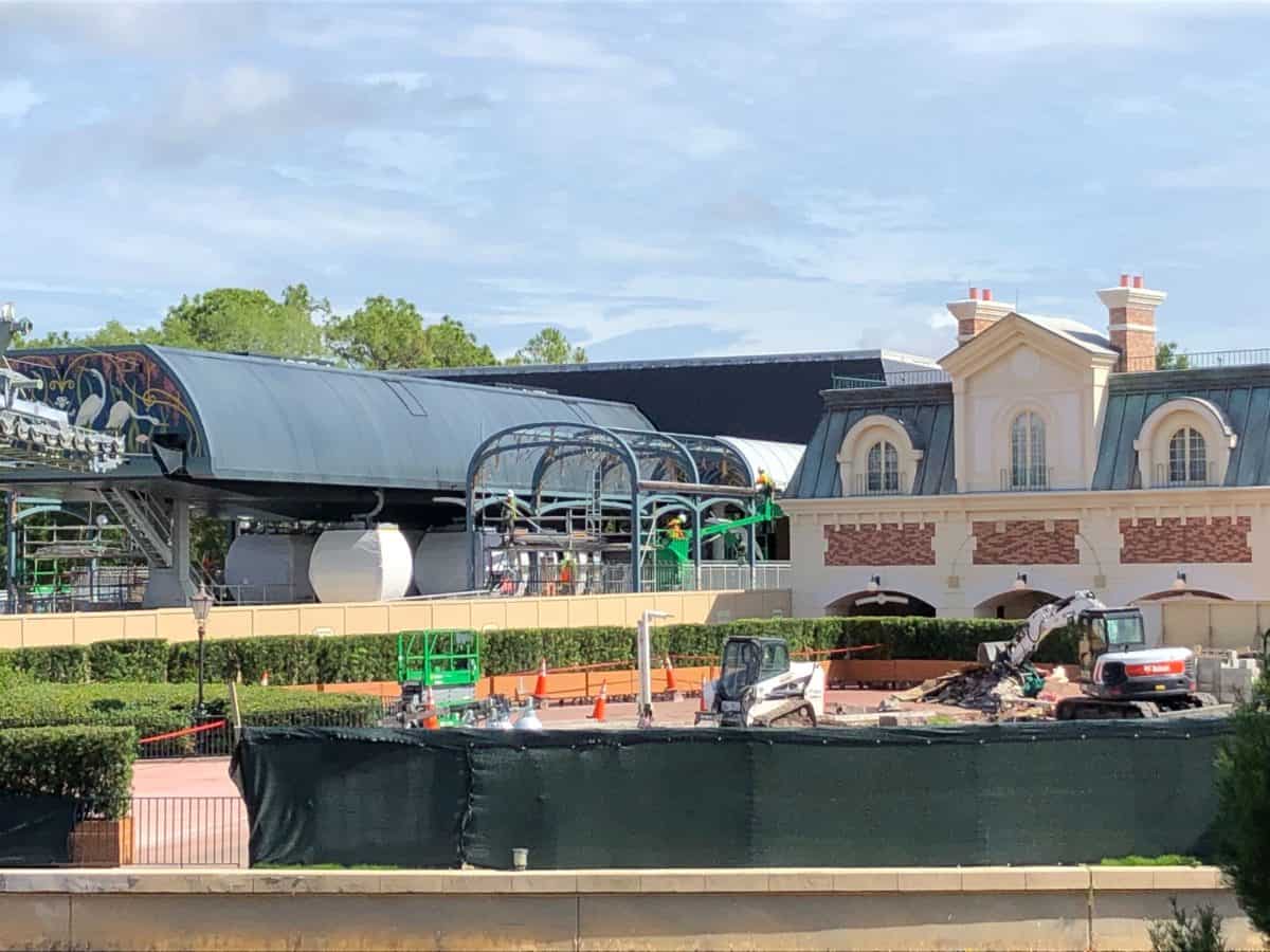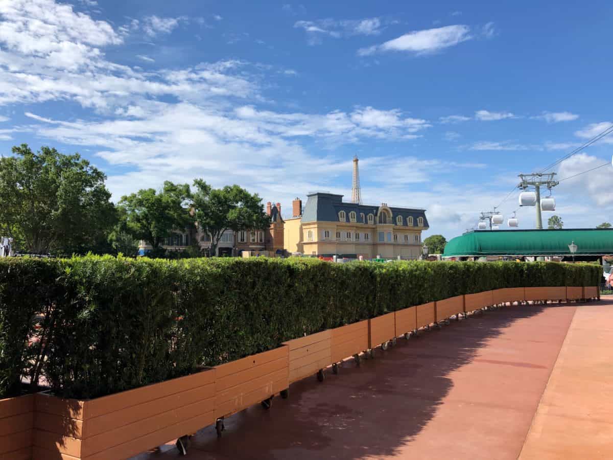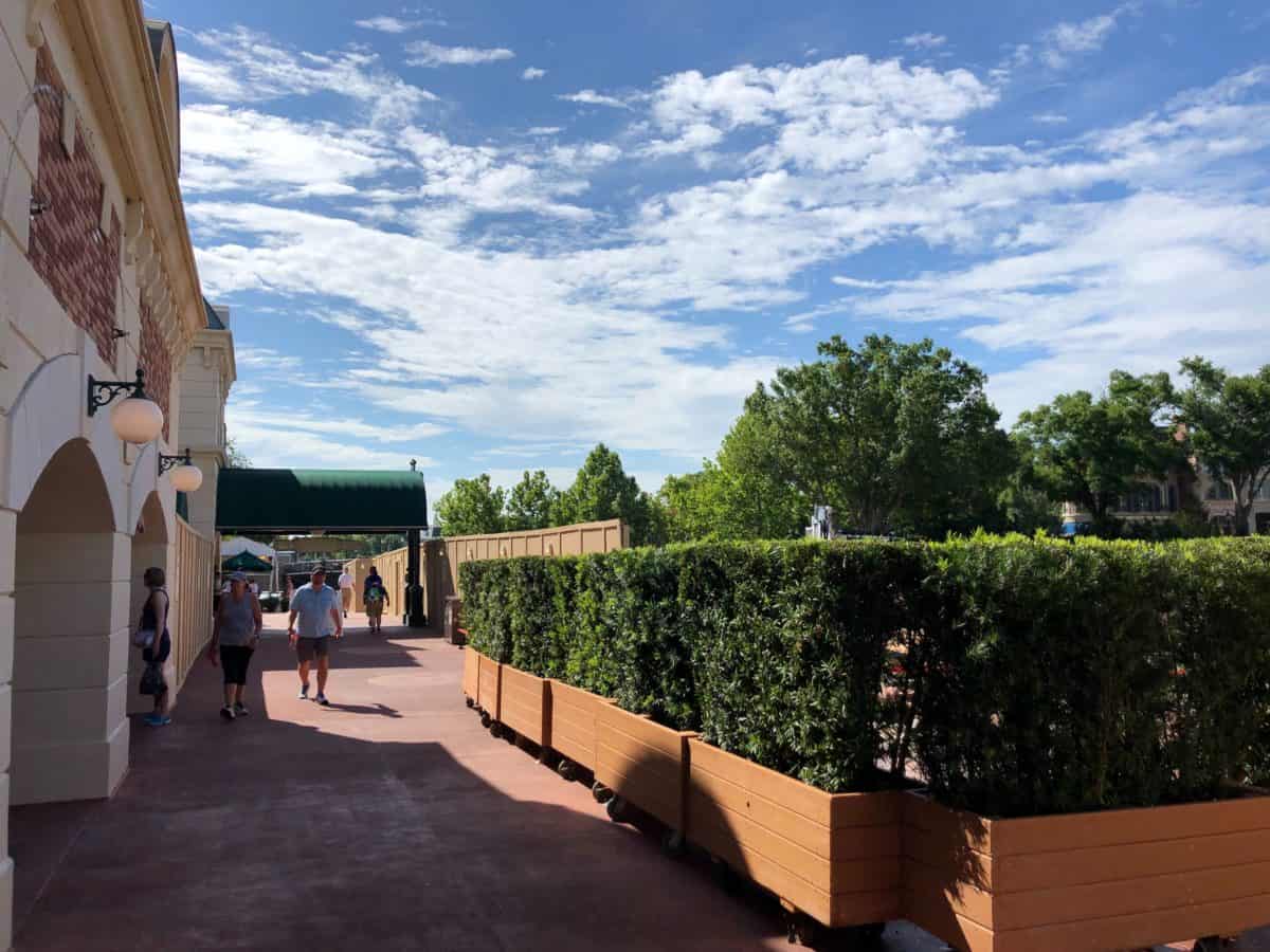 A lot of construction continues on the opposite side of the hedge barriers, keeping guests from both sides of the construction for the new entrance and for the Skyliner station.