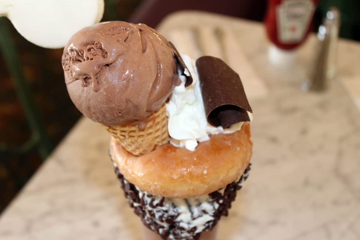 To get to the milkshake underneath, you have to dig through the glazed doughnut, whipped cream and whole ice cream cone on top.